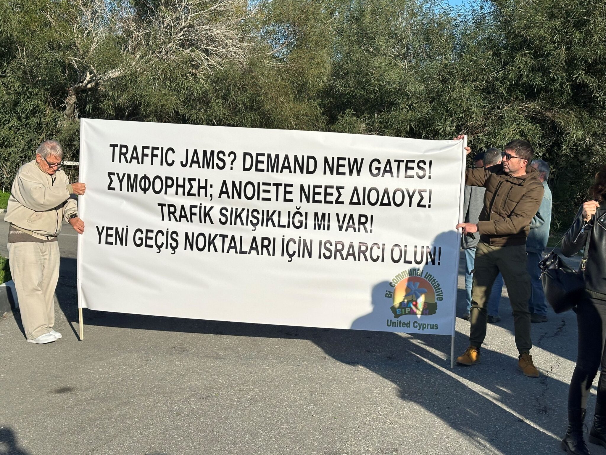 Κινητοποίηση για διάνοιξη νέων οδοφραγμάτων πραγματοποίησε την Παρασκευή το απόγευμα η Δικοινοτική Πρωτοβουλία «Ενωμένη Κύπρος» στο οδόφραγμα του Αγίου Δομετίου. Με συνθήματα όπως “Ανοίγουμε νέους δρόμους, επανενώνουμε την Κύπρο” και “Μαζί ενωμένοι για νέες διόδους”, Ελληνοκύπριοι και Τουρκοκύπριοι επέδωσαν σε εκπρόσωπο της ΟΥΝΦΙΚΥΠ επιστολή προς τον Γενικό Γραμματέα του ΟΗΕ και μοίρασαν φυλλάδια στους διερχόμενους οδηγούς.