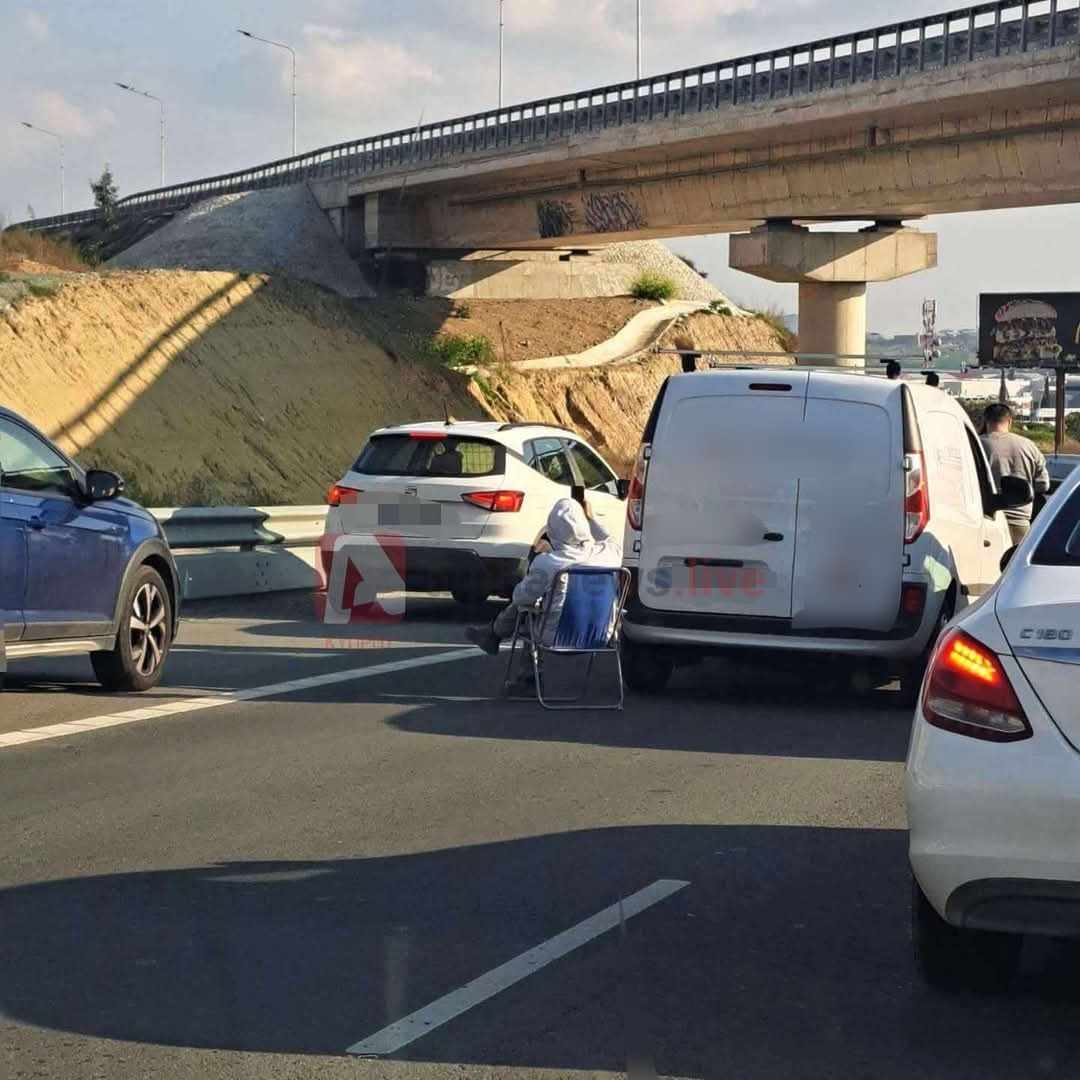 Ξεχωρίζει η εικόνα που έφτασε ενώπιον του AlphaNews.Live, με πολίτη ο οποίος κατέβηκε από το όχημά του στον αυτοκινητόδρομο Λευκωσίας – Λάρνακας κι έκατσε… χαλαρός στην καρέκλα του, μέχρι να περάσει η ώρα.