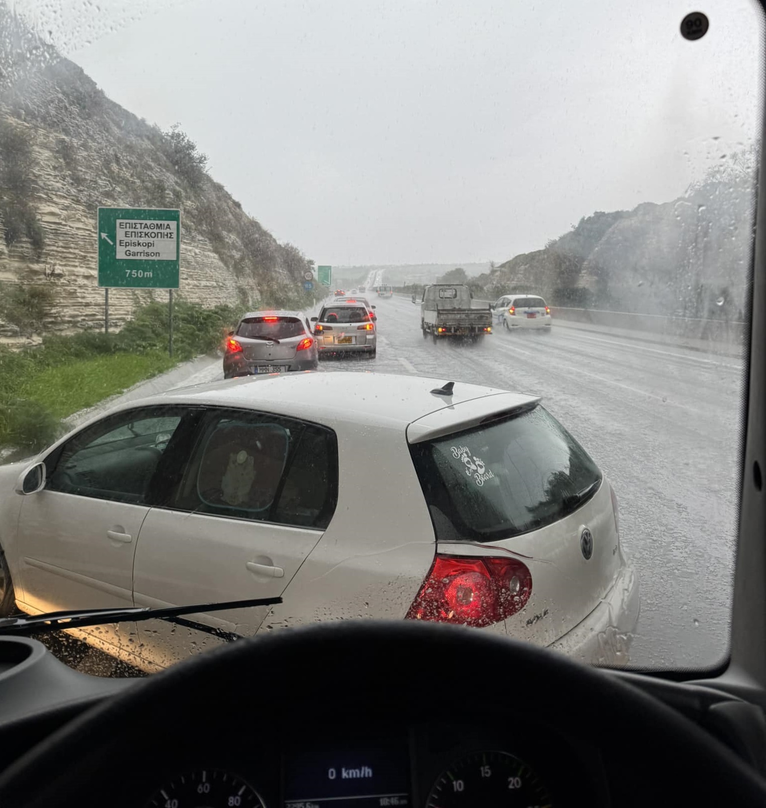 Έντονη βροχή, χαλαζόπτωση και ισχυροί άνεμοι, επηρεάζουν την κυκλοφορία στον αυτοκινητόδρομο Λεμεσού-Πάφου και στο ευρύτερο οδικό δίκτυο των περιοχών κατά μήκος του αυτοκινητοδρόμου, γύρω στις 11.30 το μεσημέρι της Δευτέρας. Λόγω ροής και συσσώρευσης νερού οι δρόμοι είναι ολισθηροί, ενώ η ορατότητα είναι περιορισμένη.