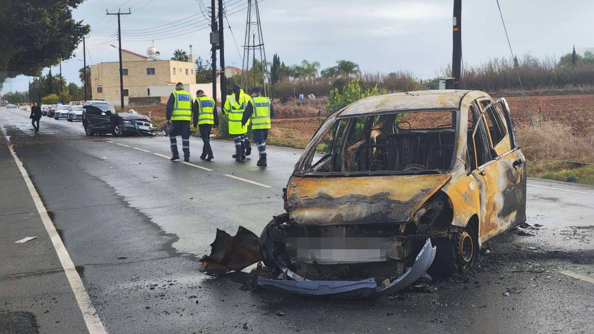 Το δεύτερο όχημα, το οποίο οδηγείτο από 44χρονο Ε/κ με συνοδηγό τον 15χρονο γιο του επίσης Ε/κ, αναφλέγηκε και καταστράφηκε ολοσχερώς. Ο 44χρονος και ο 15χρονος γιος του τραυματίστηκαν πολύ ελαφρά κι αφού έτυχαν των πρώτων βοηθειών πήραν εξιτήριο.