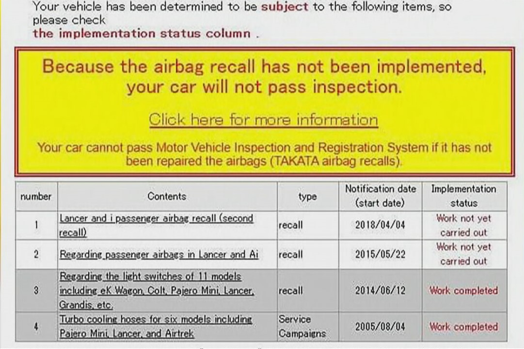 Στην ειδοποίηση ανάκλησης αναγράφεται με κόκκινα γράμματα ότι το όχημα πρέπει να ακινητοποιηθεί άμεσα και να γίνει αντικατάσταση του αερόσακους και στον σύνδεσμο που επισυνάπτεται αναφέρει ρητά ότι υπεύθυνος για την αντικατάσταση του είναι ο ίδιος ο αντιπρόσωπος.