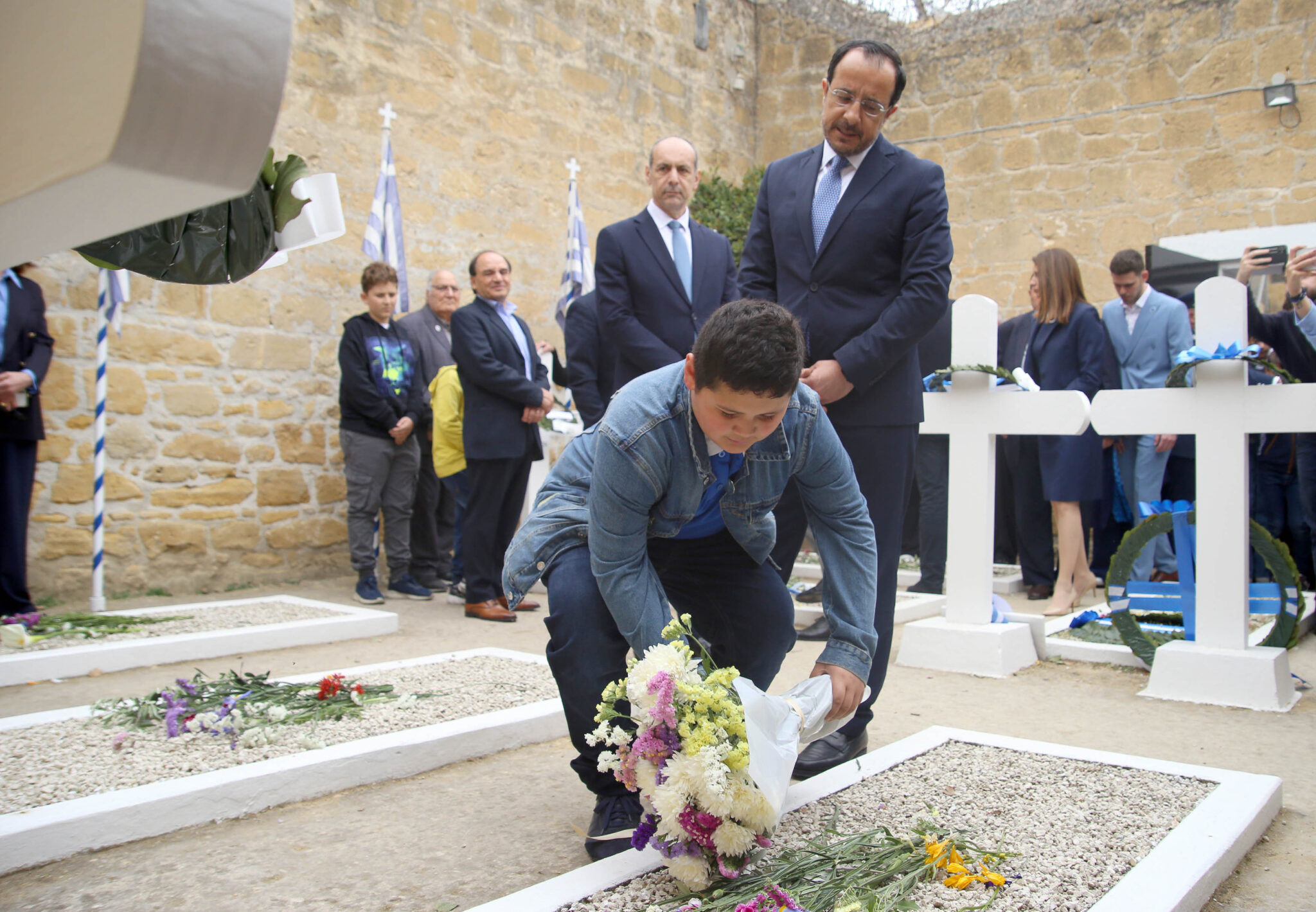 Σε δηλώσεις του στους δημοσιογράφους, ο Πρόεδρος της Δημοκρατίας είπε για τη σημερινή επέτειο ότι «είμαστε περήφανοι δικαιωματικά για τον αγώνα της ΕΟΚΑ, είμαστε περήφανοι για τους αγωνιστές της ΕΟΚΑ, είναι ο λόγος που υπάρχουμε εμείς σήμερα, είναι ο λόγος που υπάρχει ό,τι σημαντικότερο έχουμε, η Κυπριακή Δημοκρατία», προσθέτοντας ότι την ίδια στιγμή, «70 χρόνια μετά τον πιο αγνό αγώνα τούτης της χώρας, δεν έχουμε δικαιώσει τους αγωνιστές μας και έχουμε υποχρέωση να πράξουμε ό,τι είναι δυνατόν για να δικαιώσουμε τις θυσίες αυτών των ανθρώπων».