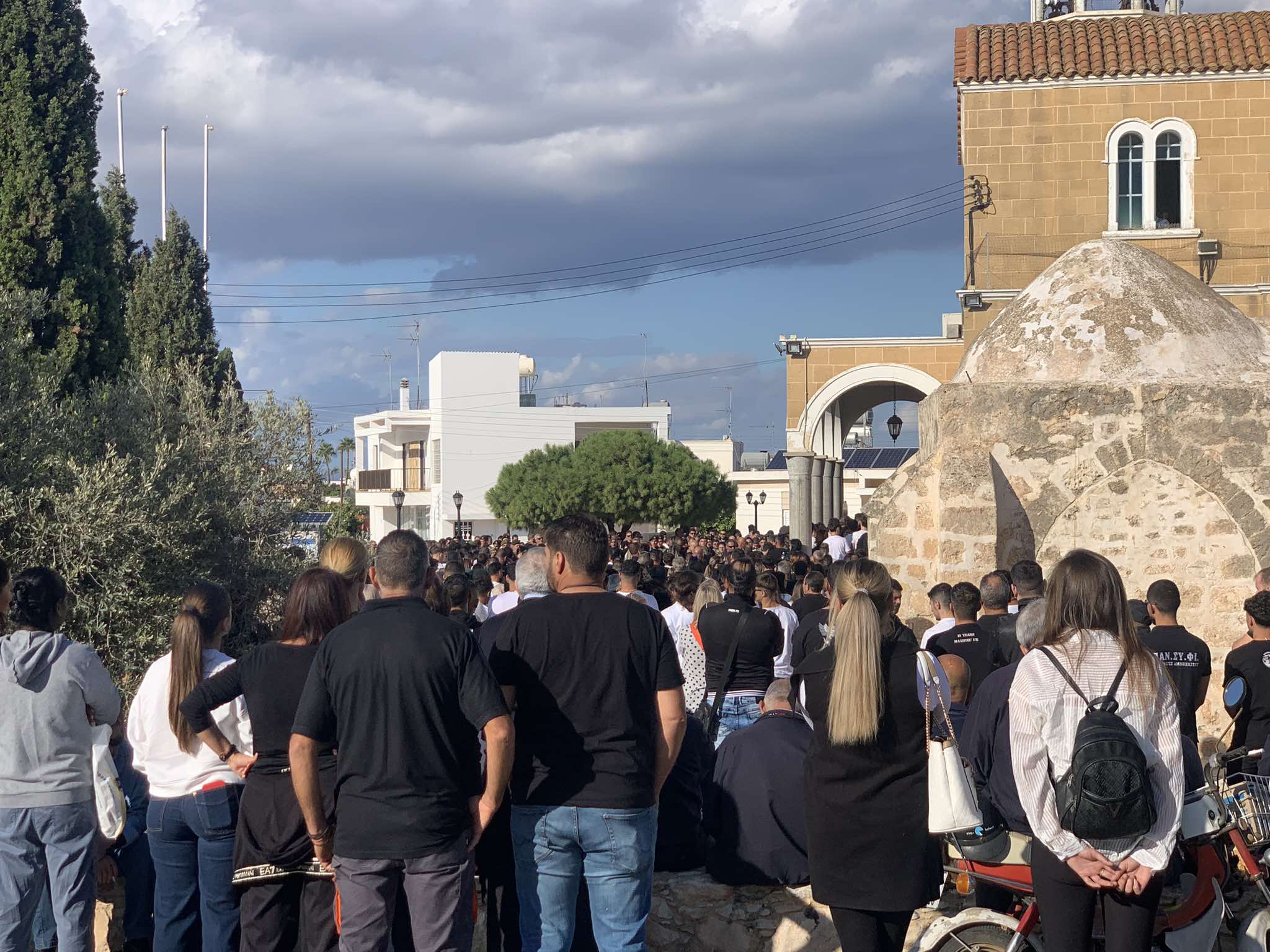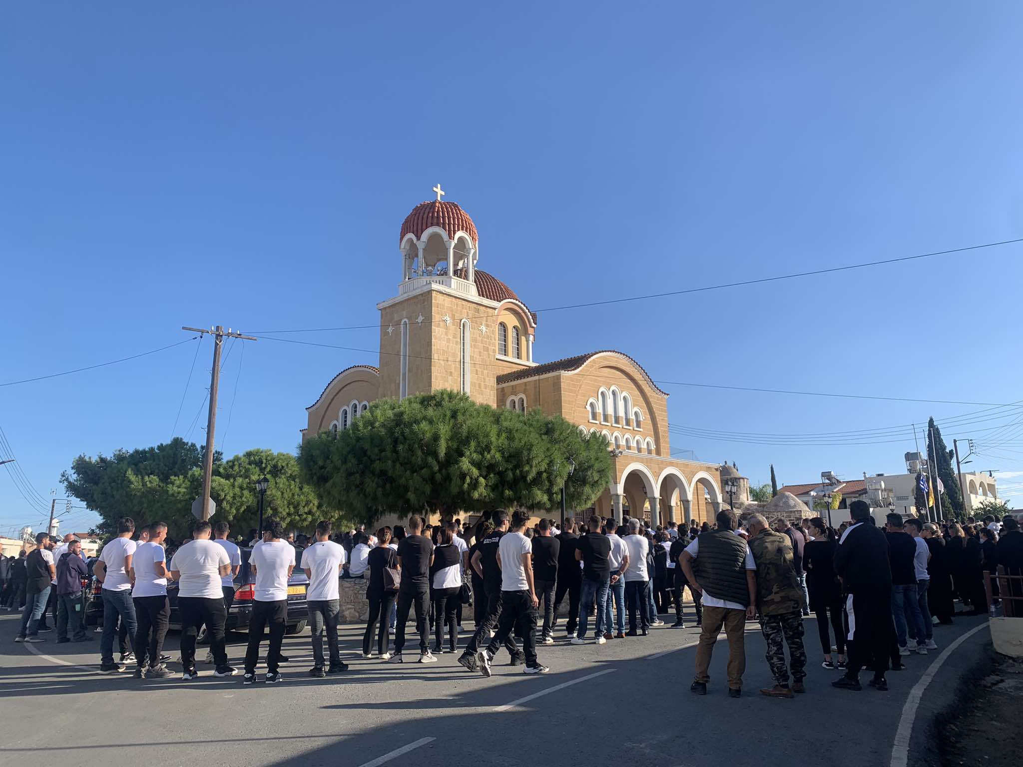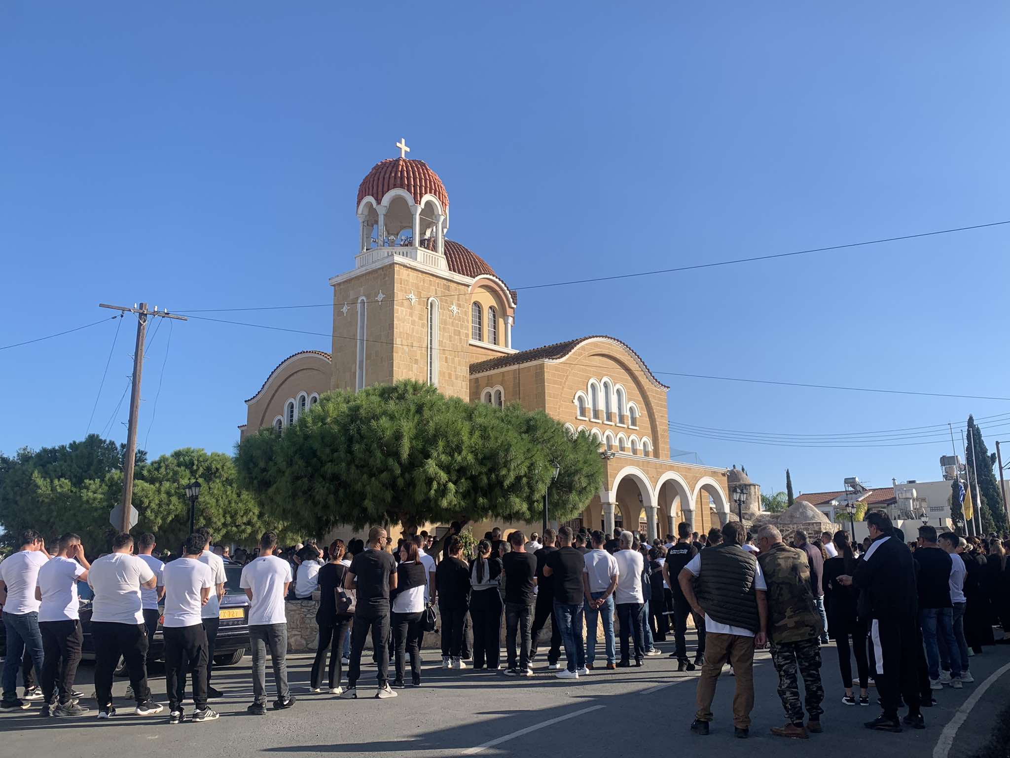 Νεαροί προσήλθαν στην εκκλησία με άσπρα μπλουζάκια που έχουν τυπωμένες τις φωτογραφίες των τριών θυμάτων της ασφάλτου, εισακούοντας την έκκληση των τριών χαροκαμένων οικογενειών των εκλιπόντων.