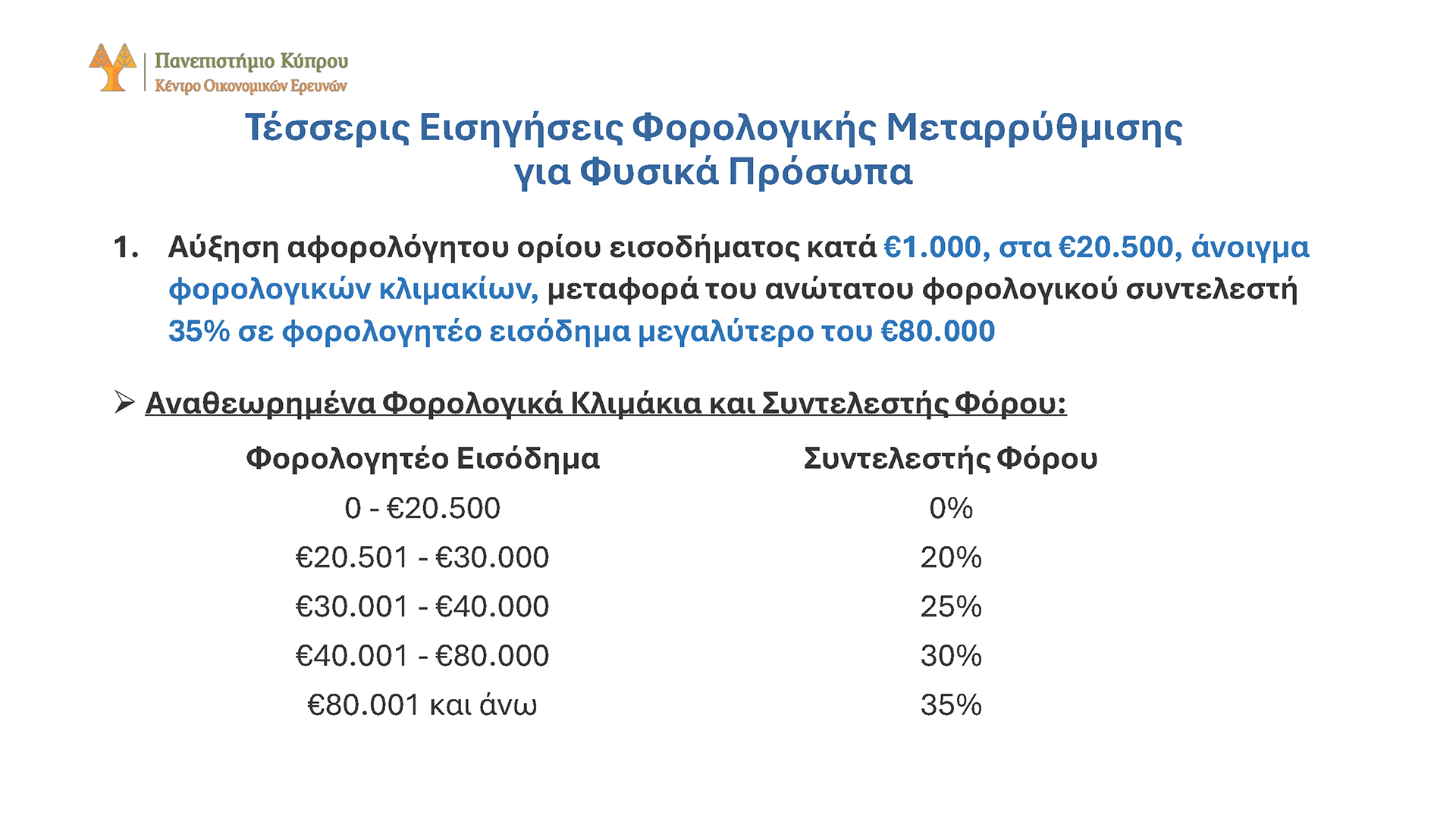 “Προσπαθήσαμε να βοηθήσουμε περισσότερους αλλά το ψηλό αφορολόγητο, αφού είναι αφορολόγητο ήδη έδωσες ότι ήταν να δώσεις. Στην Κύπρο είναι πολύ ψηλό το αφορολόγητο, ήδη παίρνεις ότι θα έπαιρνες.”