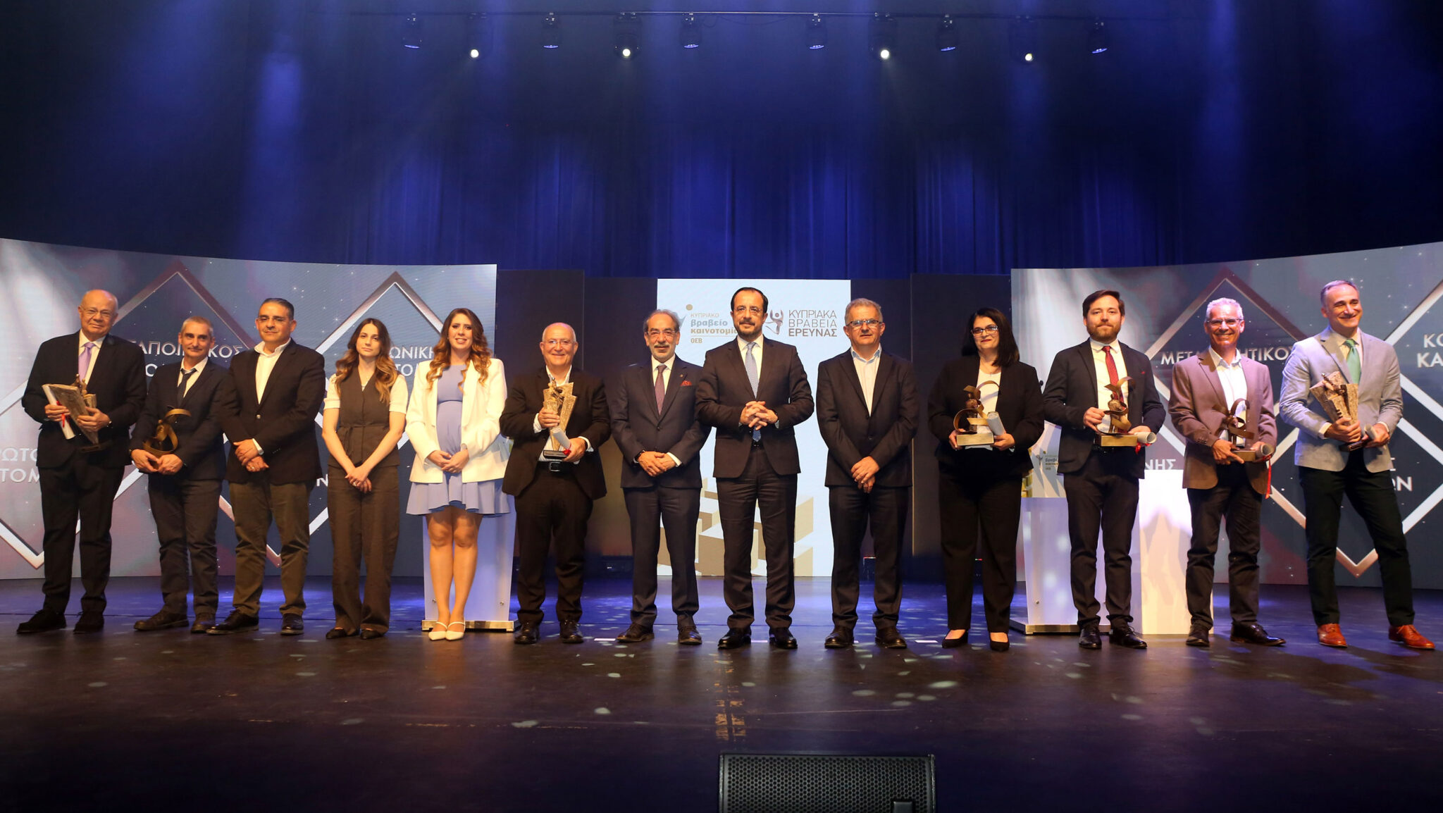 Ακολούθησε η απονομή των Βραβείων Καινοτομίας ΟΕΒ και των Βραβείων Έρευνας ΙδΕΚ από τον Πρόεδρο της Δημοκρατίας.
