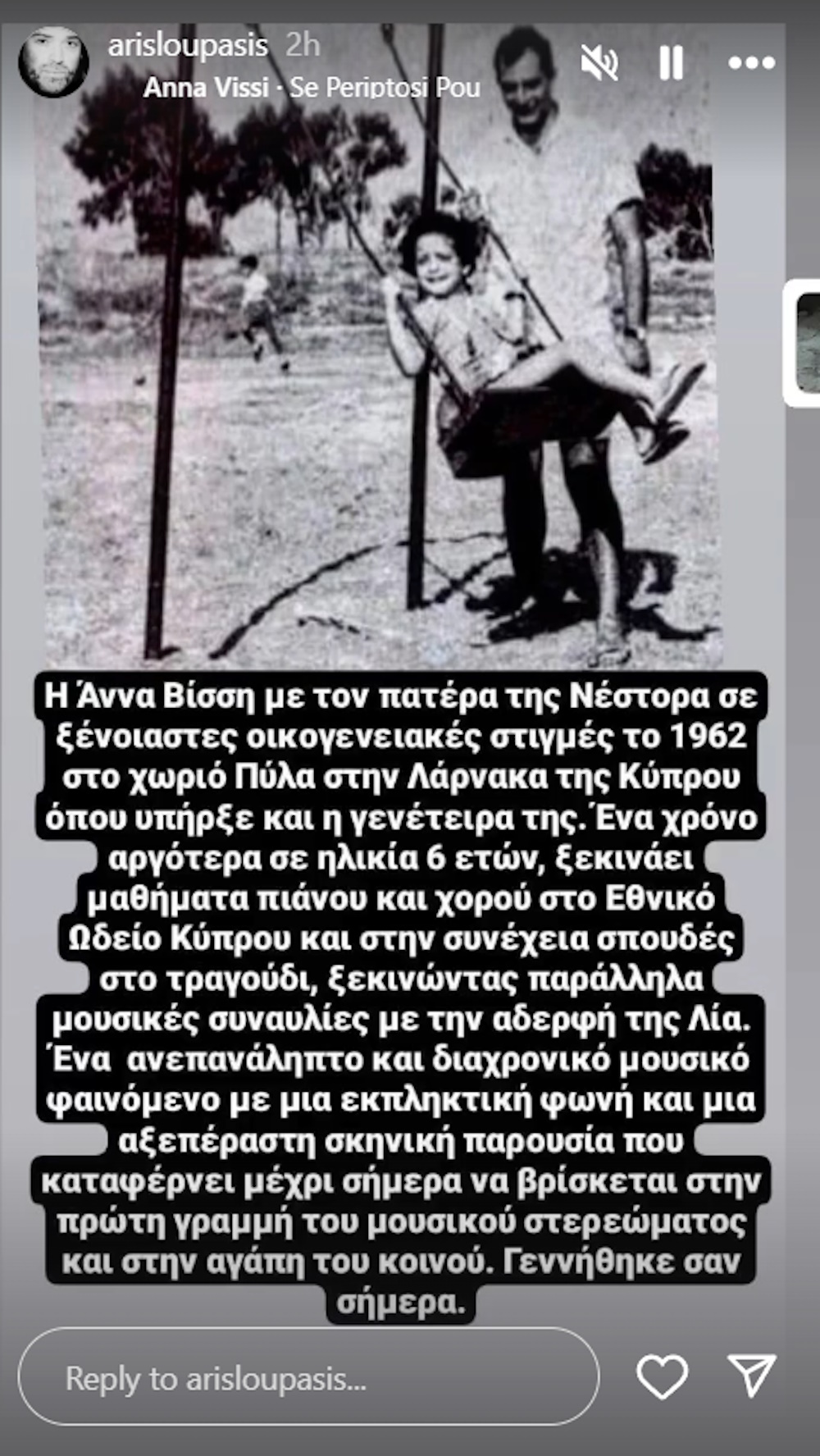 Μια σπάνια φωτογραφία είδαμε από τον δημοσιογράφο Άρη Λουπάση, η οποία σχετίζεται με την παιδική ηλικία της Άννας Βίσση.