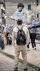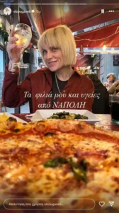Η Ελεωνόρα Ζουγανέλη ανέβασε μια καλλιτεχνική φωτογραφία από το δείπνο τους σε ατμοσφαιρικό ιταλικό εστιατόριο, συνοδεύοντάς τη με τις πασχαλινές της ευχές. Από την άλλη, ο Νίκος Συρίγος επέλεξε να φωτογραφηθεί μπροστά από μία εμβληματική τοιχογραφία του Ντιέγκο Μαραντόνα – ενός από τα πιο χαρακτηριστικά σημεία της πόλης.
