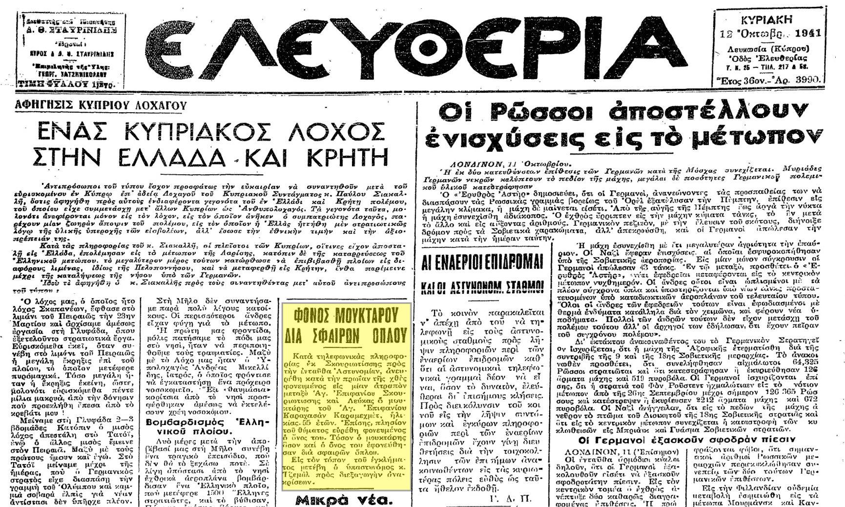 Η εφημερίδα ΕΛΕΥΘΕΡΙΑ, στις 12 Οκτωβρίου 1941 γράφει: “Φόνος Μουκτάρου, δια σφαιρών όπλου. Κατά τηλεφωνικάς πληροφορίας, εκ Σκουριωτίσσης προς την ενταύθα Αστυνομία, ανευρέθη κατά την πρωϊαν της χθες φονευμένος εις μίαν ατραπόν μεταξύ Αγ. Επιφανίου Σκουριωτίσσης και Λεύκας, ο μουκτάρης του Αγ. Επιφανίου, Καραχασάν Καραμεχμέτ, ηλικίας 55 ετών. Επίσης πλησίον του θύματος ευρέθη φονευμένος ο όνος του.”
