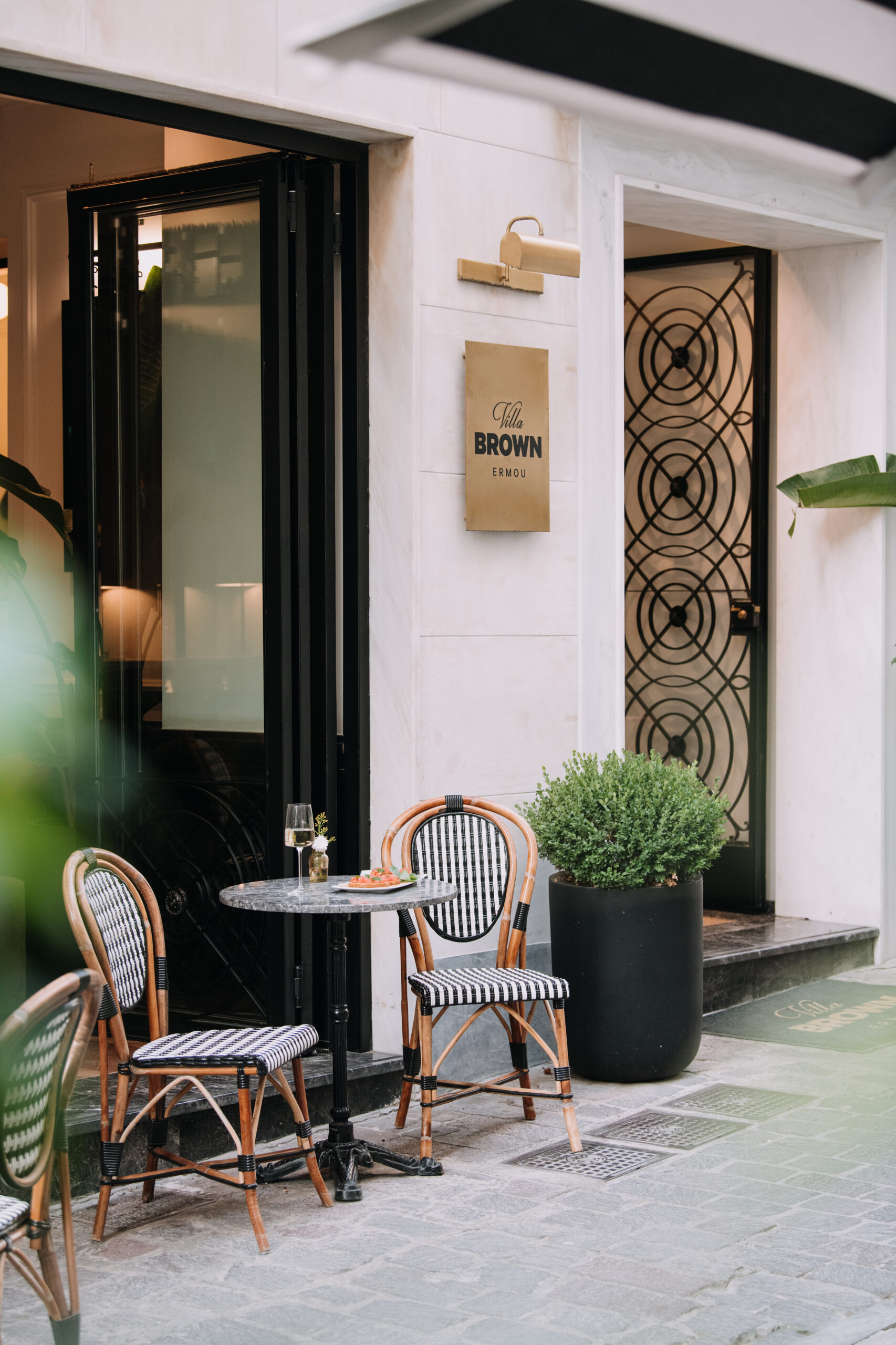 Villa Brown Ermou, ένα υπέροχο boutique ξενοδοχείο σε μια από τις πιο κοσμοπολίτικες γειτονιές του κέντρου, πολύ κοντά στην Οδό Ερμού και ακριβώς πάνω στον πολύβουο πεζόδρομο της Πετράκη για απολαυστικές εμπειρίες φαγητού και ποτού. Νέα άφιξη στην περιοχή το Μουσείο Μαρία Κάλλας (λιγότερο από 1 λεπτό περπάτημα), από όπου πρέπει οπωσδήποτε να περάσετε. Η διακοσμητική προσέγγιση των 16 δωματίων παρουσιάζει ένα συνδυασμό από πολυτελείς μαρμάρινες επιφάνειες, χάλκινες λεπτομέρειες και μια παλέτα dusty ροζ με τόνους μαύρου, δίνοντας μια αίσθηση μοντέρνας Belle Époque. Στο ισόγειο θα βρεις το απόλυτο παριζιάνικο spot, ένα μπιστρό με εξωτερικό και εσωτερικό χώρο για brunch ή after office bites and drinks. Αφού απολαύσετε ψώνια στην Ερμού, κάντε μια στάση στο Villa Brown Ermou για ένα brunch που θα σας ενθουσιάσει ή ένα απογευματινό tea experience, πλαισιωμένο από την ατμόσφαιρα των καλλιτεχνικών στεκιών του 20ού αιώνα. Από φρεσκοψημένα αρτοσκευάσματα μέχρι αυθεντικές ελληνικές γεύσεις και δροσιστικά aperitivo, υπάρχει κάτι για κάθε γούστο.