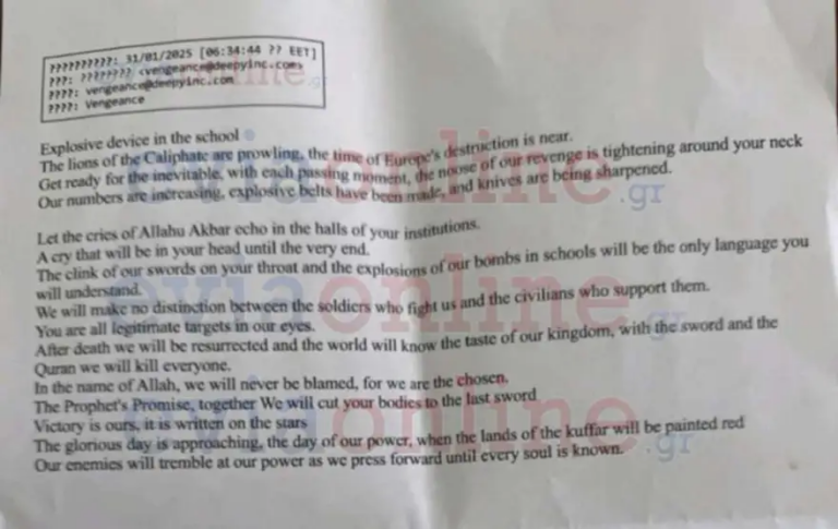 Δείτε φωτογραφία από απειλητικό email που εστάλη σε σχολείο της Εύβοιας: