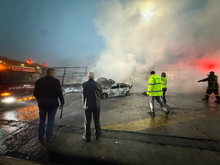 Όπως φαίνεται στα βίντεο του protothema.gr, τα αυτοκίνητα και η νταλίκα κάηκαν ολοσχερώς και έχουν μείνει μόνοι οι σκελετοί ενώ διαλύθηκε και το κουβούκλιο των διοδίων: