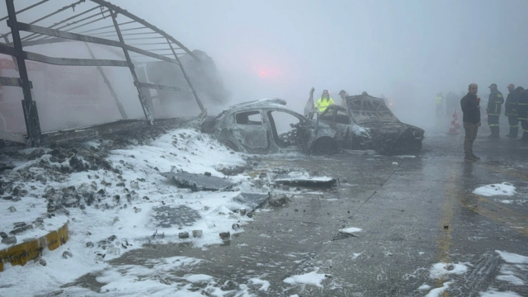 Όλα συνέβησαν λίγο μετά τις 16:00, ενώ στην περιοχή η ορατότητα ήταν χαμηλό λόγω της πυκνής ομίχλης. Το σημείο αμέσως μετά τη σύγκρουση θύμιζε βομβαρδισμένο τοπίο, με τη φωτιά να καίει για αρκετή ώρα στα διαλυμένα ΙΧ και στη νταλίκα.
