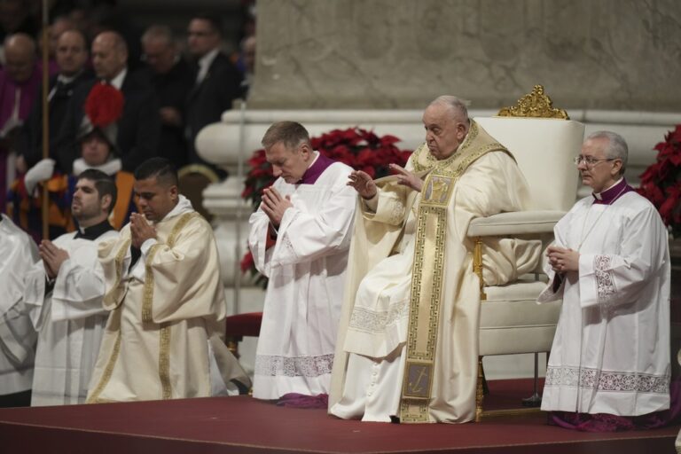 Χθες, παραμονή των Χριστουγέννων, κήρυξε την έναρξη του «Άγιου Έτους» 2025 της Ρωμαιοκαθολικής Εκκλησίας, ένα μεγάλο παγκόσμιο προσκύνημα για το οποίο αναμένεται να προσέλθουν στη Ρώμη πάνω από 30 εκατομμύρια πιστοί από όλον τον κόσμο. Στη συνέχεια χοροστάτησε στη λειτουργία των μεσονυκτίων κατά την οποία κάλεσε τους πιστούς να σκεφτούν «τους πολέμους, τα παιδιά που πυροβολούνται, τις βόμβες στα σχολεία ή τα νοσοκομεία», αναφορικά με τις ισραηλινές επιδρομές στη Γάζα, τη «βαναυσότητα» των οποίων είχε καταγγείλει αυτήν την εβδομάδα, προκαλώντας τη διαμαρτυρία της ισραηλινής διπλωματίας.