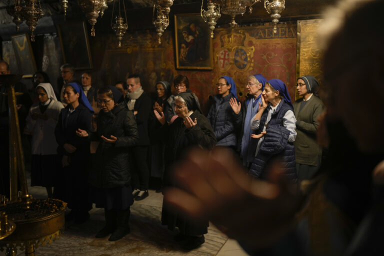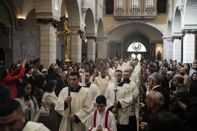 Ο πόλεμος στη Γάζα επισκίασε για ακόμη μια χρονιά τη νύχτα των Χριστουγέννων στην παλαιστινιακή πόλη της Βηθλεέμ, λίκνο του Χριστιανισμού, όπου μερικές εκατοντάδες πιστοί συγκεντρώθηκαν μέσα και γύρω από τον Ναό της Γέννησης.