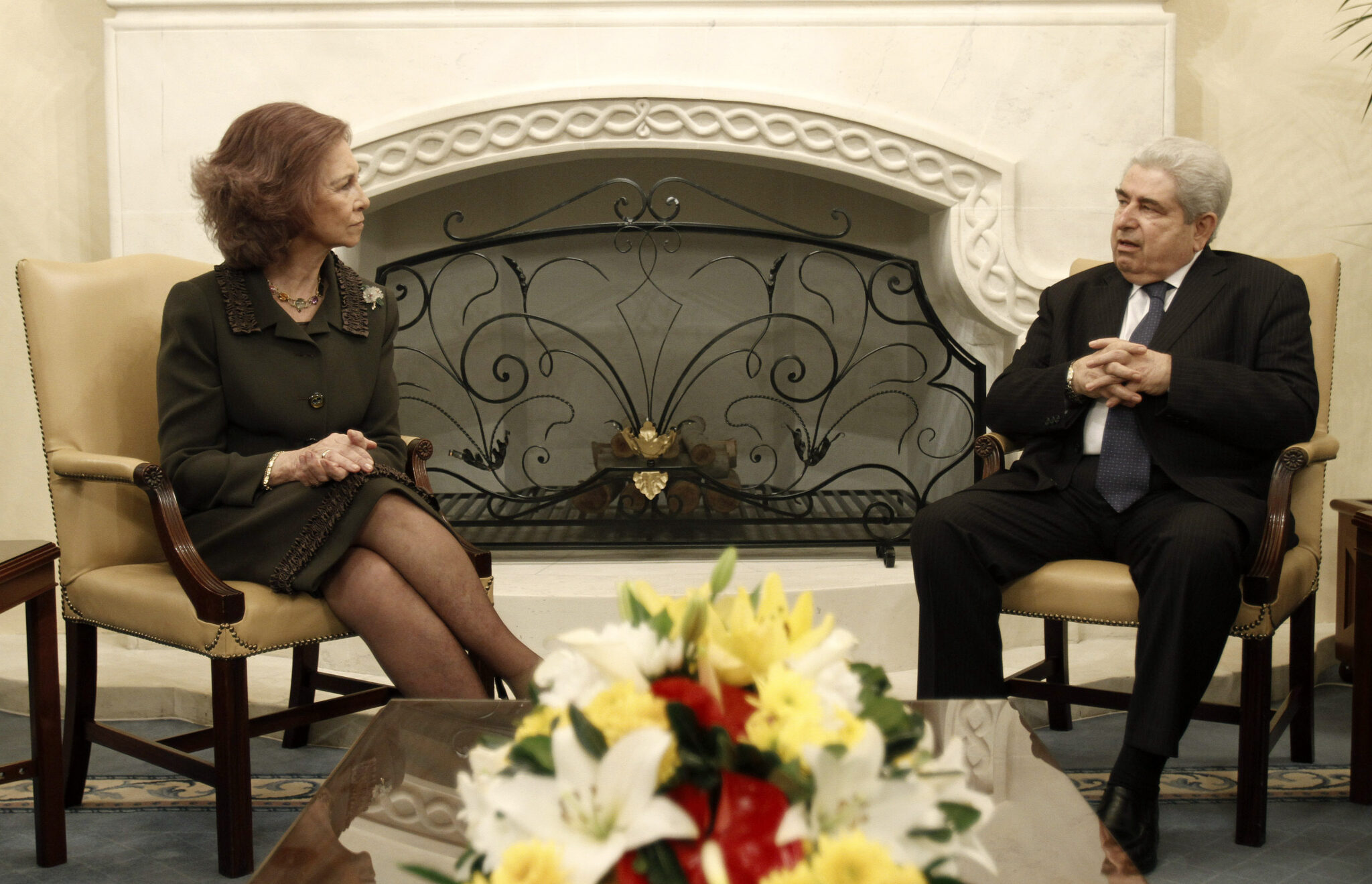 Μάρτιος του 2010. Τη Βασίλισσα της Ισπανίας Σοφίας, υποδέχονται στο Προεδρικό, ο τότε Πρόεδρος της Δημοκρατίας Δημήτρης Χριστόφιας και η σύζυγός του Ερση.