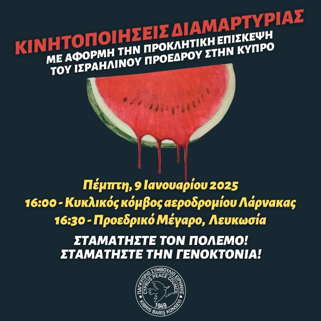 Στην αφίσα διαμαρτυρίας για την επίσκεψη Χέρτσογκ στην Κύπρο απεικονίζεται ένα καρπούζι, γεγονός που προκαλεί ερωτηματικά. Τι συμβολίζει το καρπούζι;