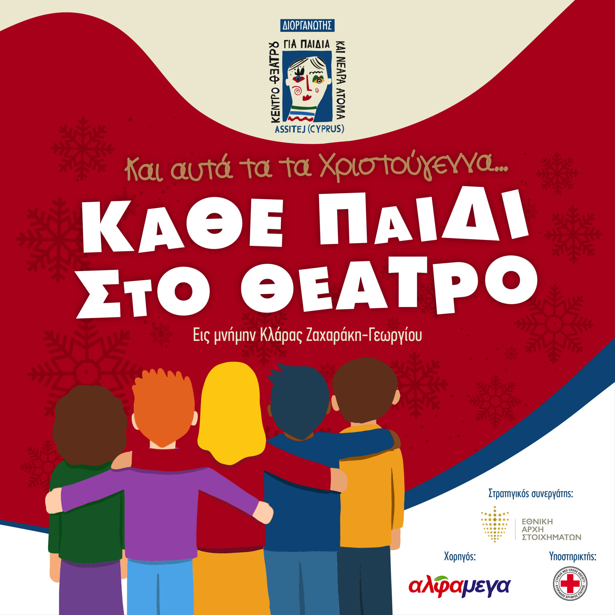 Το Κέντρο Θεάτρου για Παιδιά και Νεαρά Άτομα – ASSITEJ Κύπρου διοργανώνει για τέταρτη συνεχή χρονιά τη δράση «Κάθε Παιδί στο Θέατρο», μέσα από την οποία παιδιά από ευάλωτες ομάδες του πληθυσμού παρακολουθούν δωρεάν θεατρικές παραστάσεις κατά τη διάρκεια των γιορτών. Φέτος, η δράση είναι αφιερωμένη στη μνήμη της σκηνογράφου, εικαστικού και εκπαιδευτικού Κλάρας Ζαχαράκη-Γεωργίου, η οποία απεβίωσε πρόσφατα.