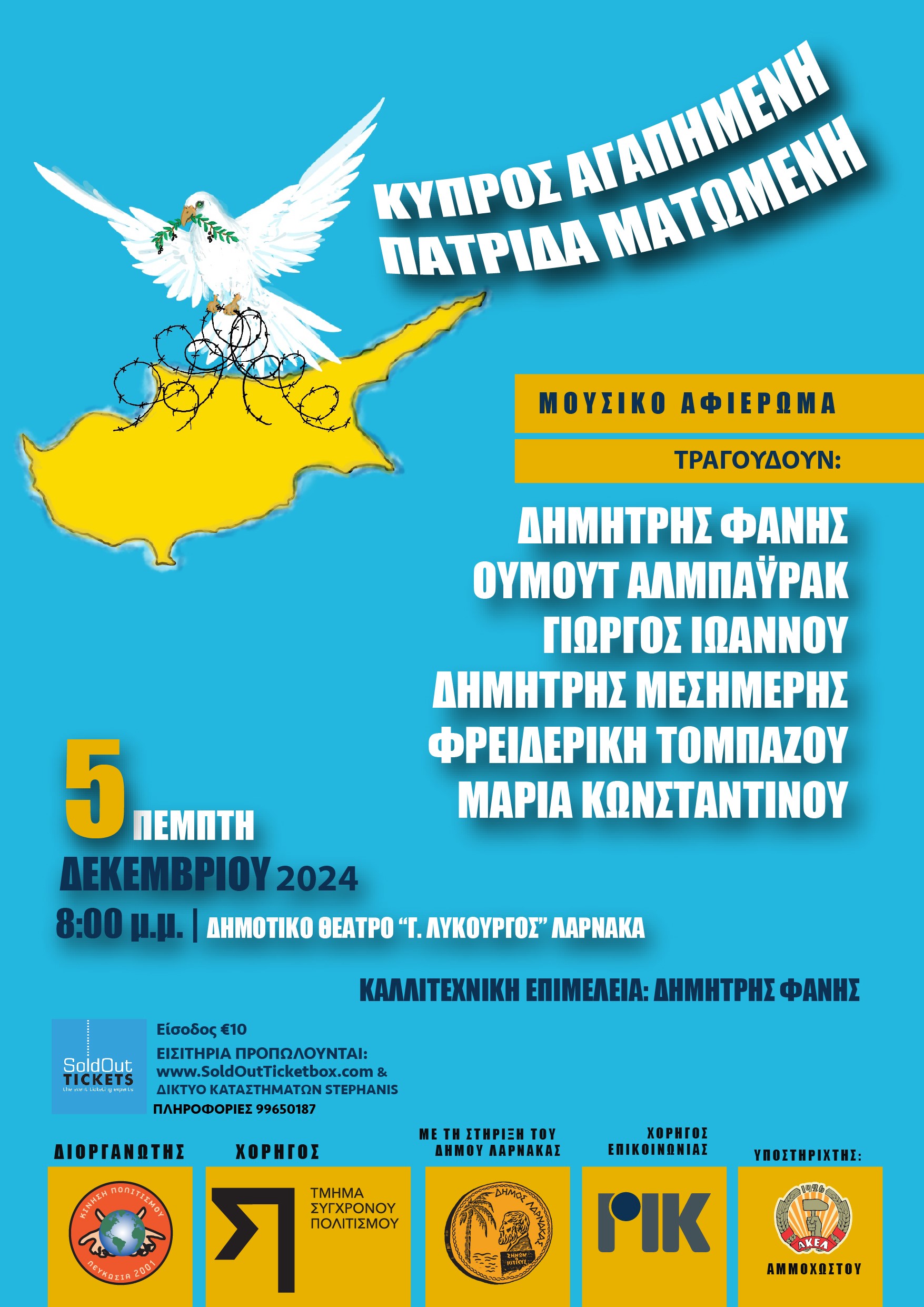 Η κίνηση πολιτισμού μέσα στο πλαίσιο του βασικού της στόχου που είναι η ανάπτυξη και η καλλιέργεια της πολιτιστικής και πνευματικής ζωής διοργανώνει μια αλλιώτικη συναυλία για τα 50 χρόνια από το πραξικόπημα και την εισβολή.