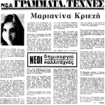 Μια αιώνια εφηβική καρδιά για την Νικολακοπούλου, η νεράιδα των ποιητών για τον Κραουνάκη, μείζον Ελληνίδα ποιήτρια για τον Δεληβοριά. Μαριανίνα Κριεζή. Μια φωνή ευαίσθητη και τρυφερή μα συνάμα δυναμική και επαναστατική. Η στιχουργός της θρυλικής Λιλιπούπολης.