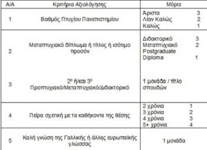 (β) Καλή γνώση της Γαλλικής ή άλλης ευρωπαϊκής γλώσσας, αποτελεί πλεονέκτημα.