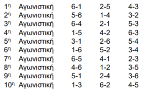 Το πρόγραμμα του πρώτου γκρουπ όπως καθορίζεται από την προκήρυξη του πρωταθλήματος: