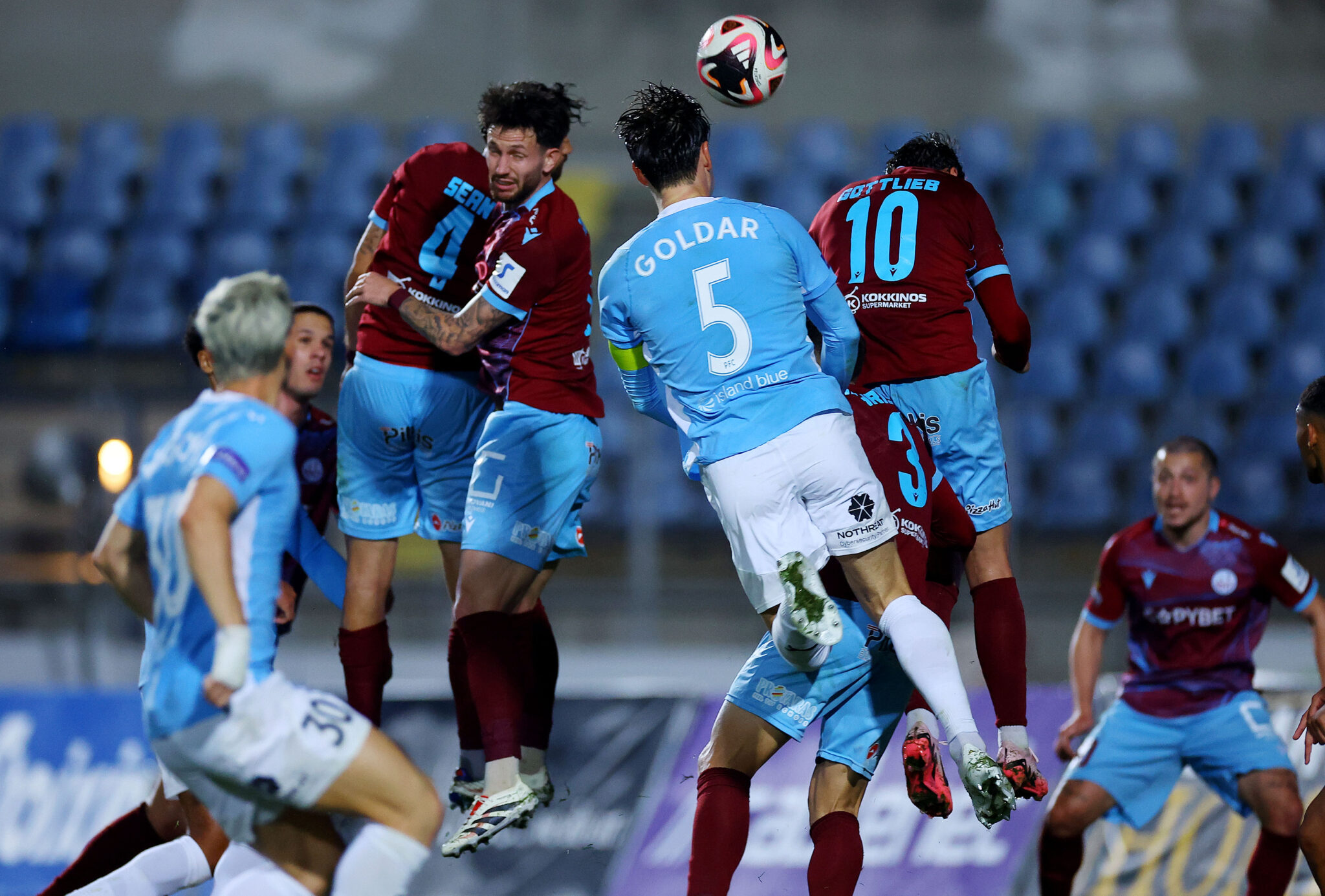 Oi «βυσσινί» απείλησαν ξανά στο 54ο λεπτό, με τον Γκότλιεμπ να δοκιμάζει το πόδι του εκτός περιοχής και τη μπάλα να περνάει δίπλα από το αριστερό δοκάρι.