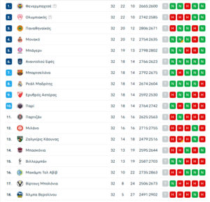 Από εκεί και πέρα, στην… ουρά της 6αδας και 10άδας γίνεται ο κακός χαμός, αφού, ο Ερυθρός Αστέρας, η Μπαρτσελόνα, η Ρεάλ και η Εφές έχουν από 18 νίκες!