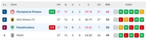 Ο Ολυμπιακός νίκησε 4-2 τον «αιώνιο» αντίπαλό του Παναθηναϊκό στο Καραϊσκάκη και σε συνδυασμό με την ήττα της ΑΕΚ από τον ΠΑΟΚ (2-3), χάθηκε στο +10 από τους «κιτρινόμαυρους» και στο +13 από τους «πράσινους», μετά την ολοκλήρωση της 1ης αγωνιστικής των playoffs!