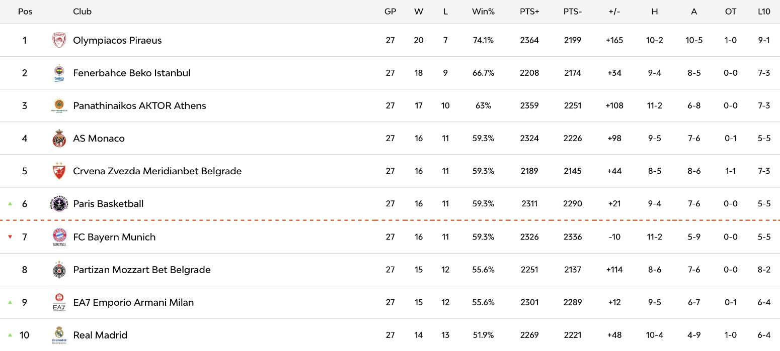 Η ομάδα του Σαρούνας Γιασικεβίτσιους νίκησε με σκορ 87-83 την Παρί στην «Adidas Arena», σε εξ αναβολής παιχνίδι για τη 17η αγωνιστική της Ευρωλίγκας. Κάπως έτσι, έμεινε μόνη της στη δεύτερη θέση με ρεκόρ 18-9, και άφησε τον Παναθηναϊκό μόνο τρίτο με 17-10!