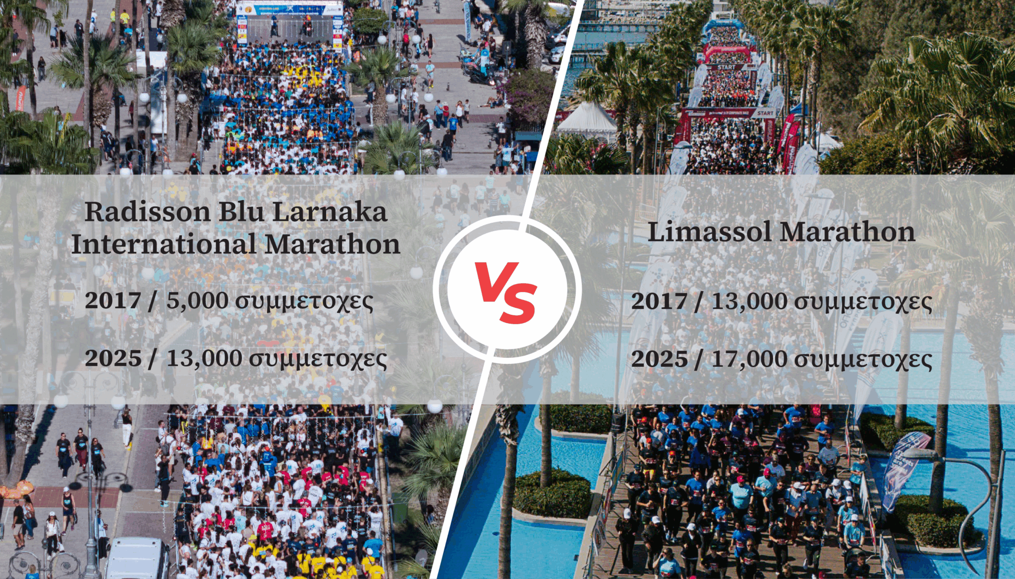Ο μαραθώνιος της Λεμεσού το 2017 είχε 13.000 συμμετοχές, ενώ το 2025 οι συμμετέχοντες έφτασαν τους 17.000.