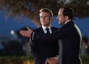 Ο Νίκος Χριστοδουλίδης υποδέχεται τον Πρόεδρο της Γαλλίας, Εμανουέλ Μακρόν