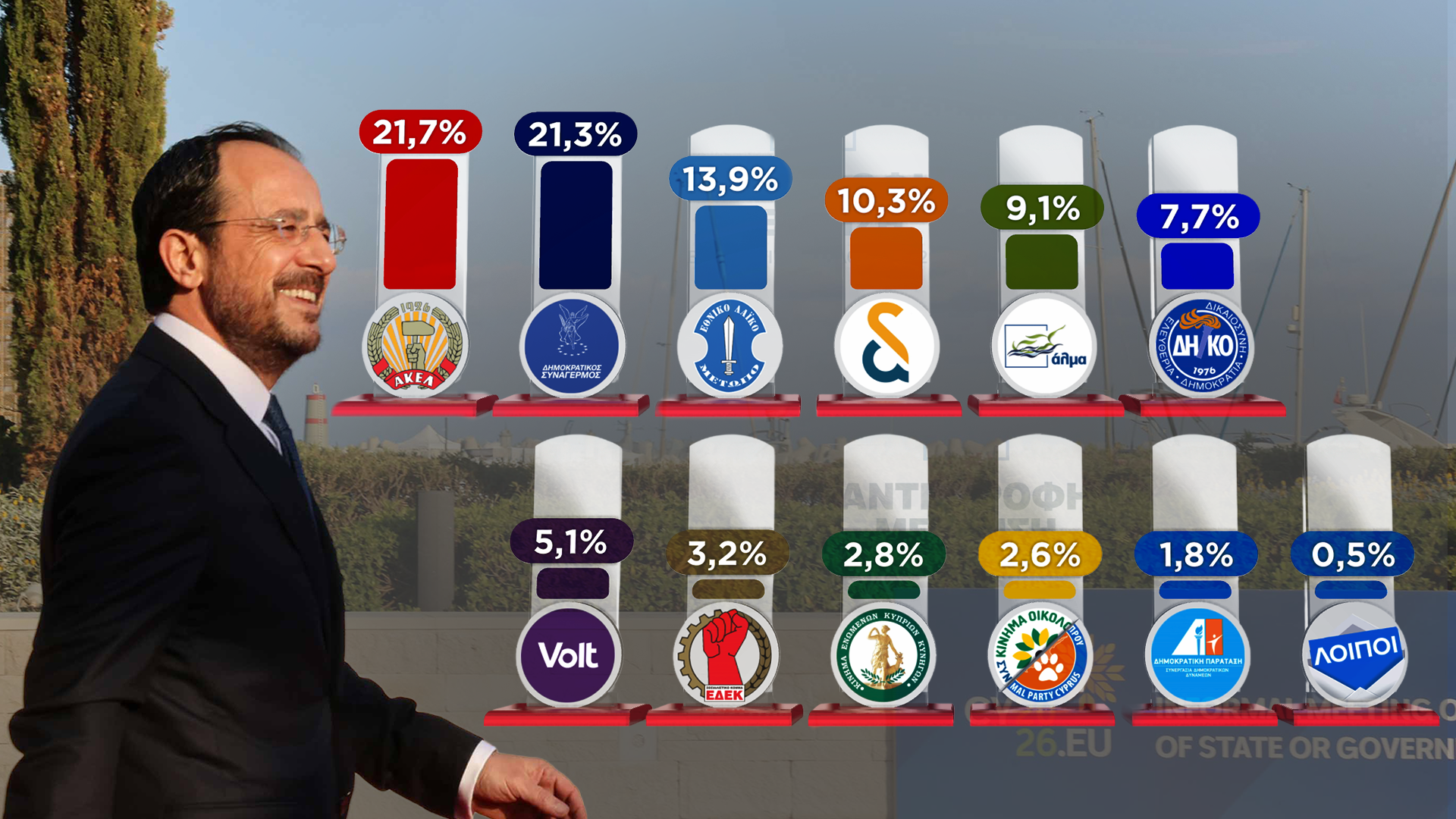 Το γεγονός ότι ο Νίκος Χριστοδουλίδης δεν έχει δικό του κόμμα, θεωρείται για κάποιους ευτύχημα και για άλλους το μεγαλύτερο του πρόβλημα. Η πρώτη σχολή σκέψης θεωρεί πως εξαιτίας αυτού, έχει ελευθερία κινήσεων στο να φέρει κοντά του κόμματα και σχηματισμούς, χωρίς να το βλέπουν ανταγωνιστικά. Και πως γι’ αυτόν ακριβώς τον λόγο το αποτέλεσμα των βουλευτικών εκλογών δεν θα αποτελεί πρόβλημα, μάθημα ή πολιτικό μήνυμα για τον ίδιο. Η δεύτερη σχολή σκέψης, θεωρεί πως η απουσία κόμματος είναι το μεγάλο του πρόβλημα, καθώς δεν υπάρχει ένα συμπαγές και οργανωμένο ακροατήριο που να τον ακολουθεί. Η αλήθεια είναι κάπου στη μέση. Μία ματιά στις δημοσκοπήσεις που διενεργήθηκαν από την RAI Consultants για λογαριασμό του Alpha, από την αρχή της θητείας του μέχρι σήμερα, καταδεικνύει πως ο ίδιος έχει ένα πιστό ακροατήριο 25-35% που τον στηρίζει, ασχέτως των χειρισμών και των κρίσεων που έχει να διαχειριστεί η κυβέρνηση. Είναι ένα ακροατήριο ψηφοφόρων του ενδιάμεσου χώρου, του ΔΗΣΥ και του ΕΛΑΜ, που φαίνεται να τον ακολουθούν από την εκλογή του μέχρι σήμερα. Το ερώτημα είναι αν αυτό το ποσοστό είναι αρκετό για να τον πάρει μέχρι τις προεδρικές του 2028 στον β’ γύρο. Για να μπορεί ωστόσο ο Πρόεδρος να βλέπει με αισιοδοξία το 2028, ρόλο θα παίξει η δύναμη των συγκυβερνώντων κομμάτων, τα βήματα και ο υποψήφιος του ΔΗΣΥ και σίγουρα η δυναμική που θα έχει το αντιπολιτευτικό μπλοκ.