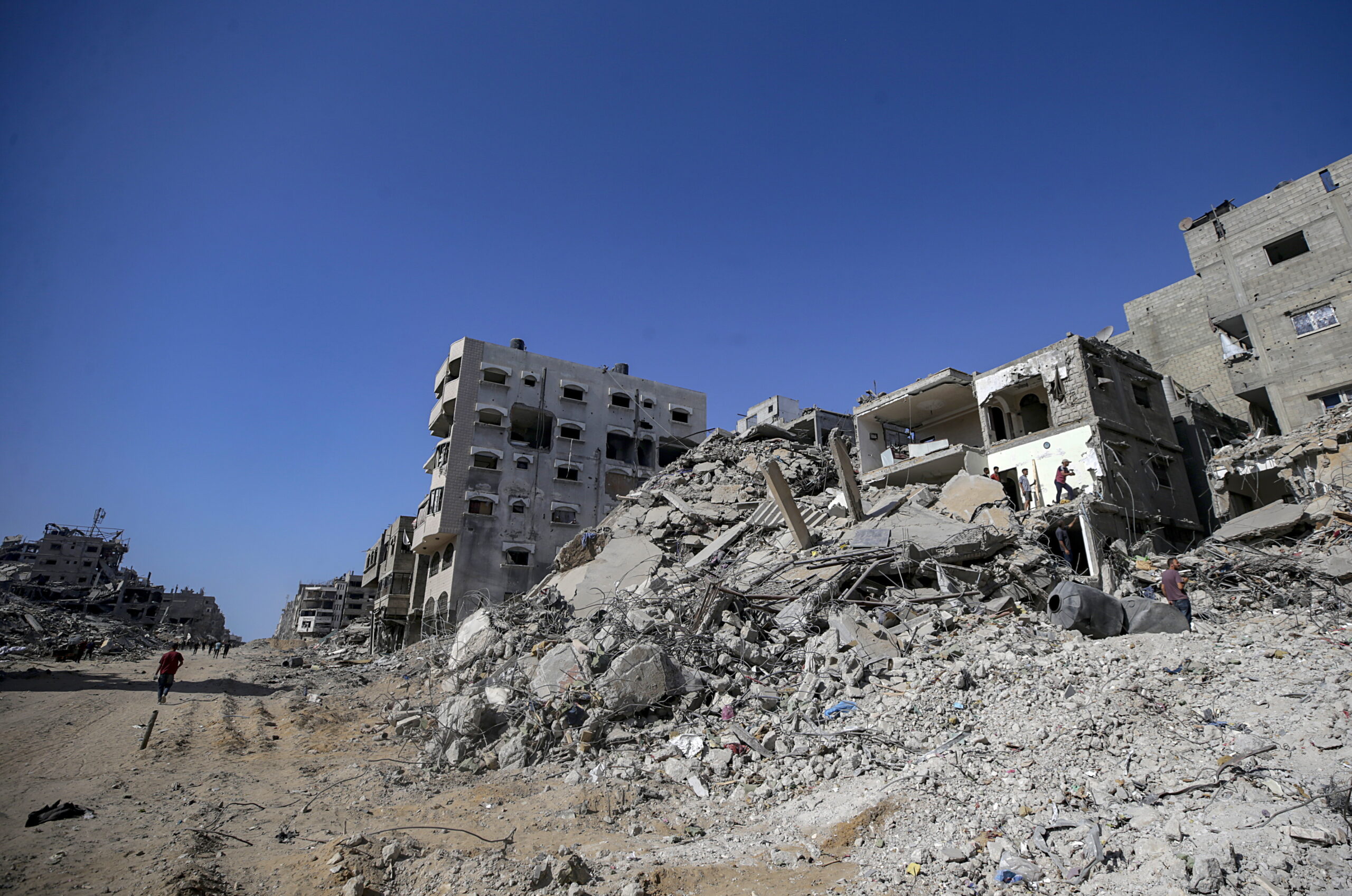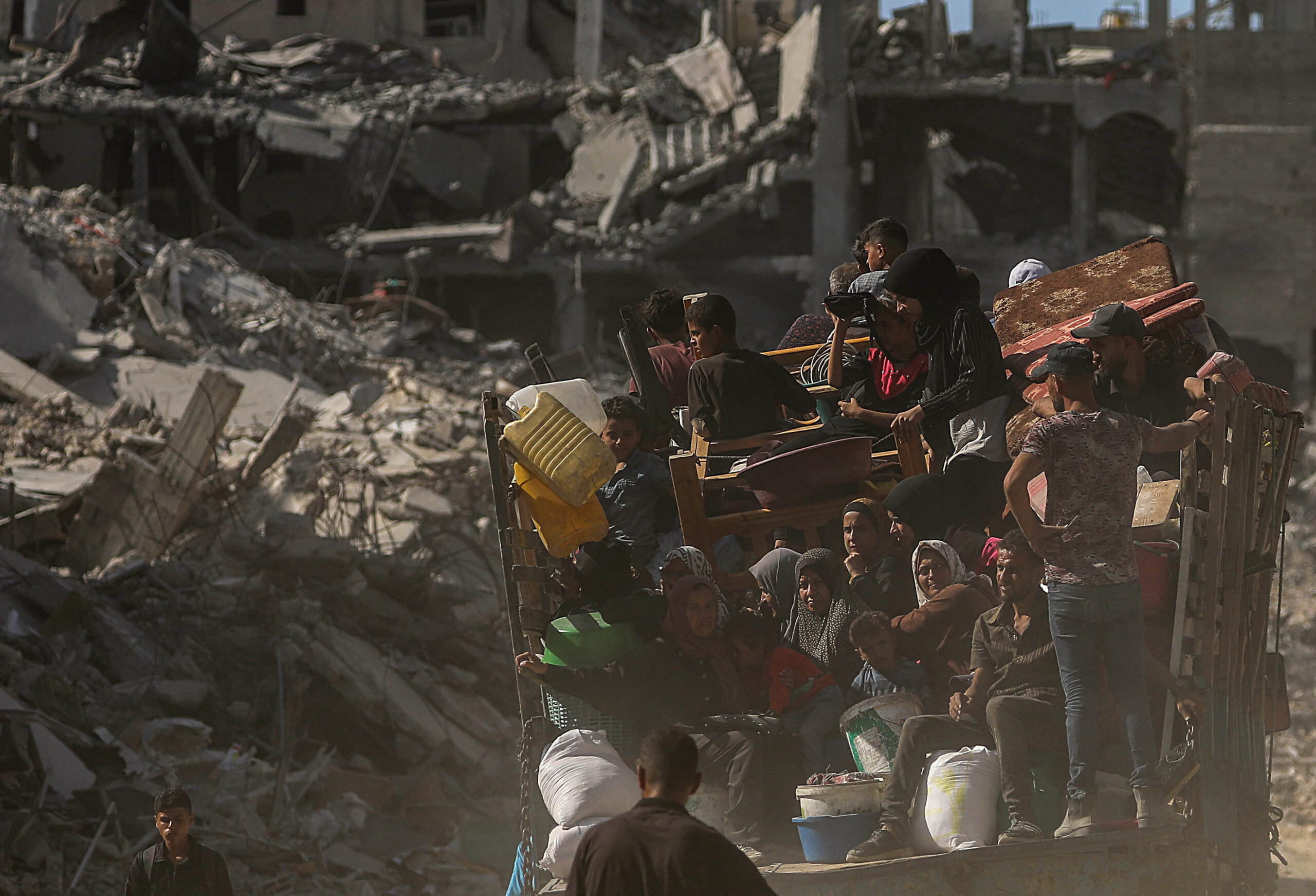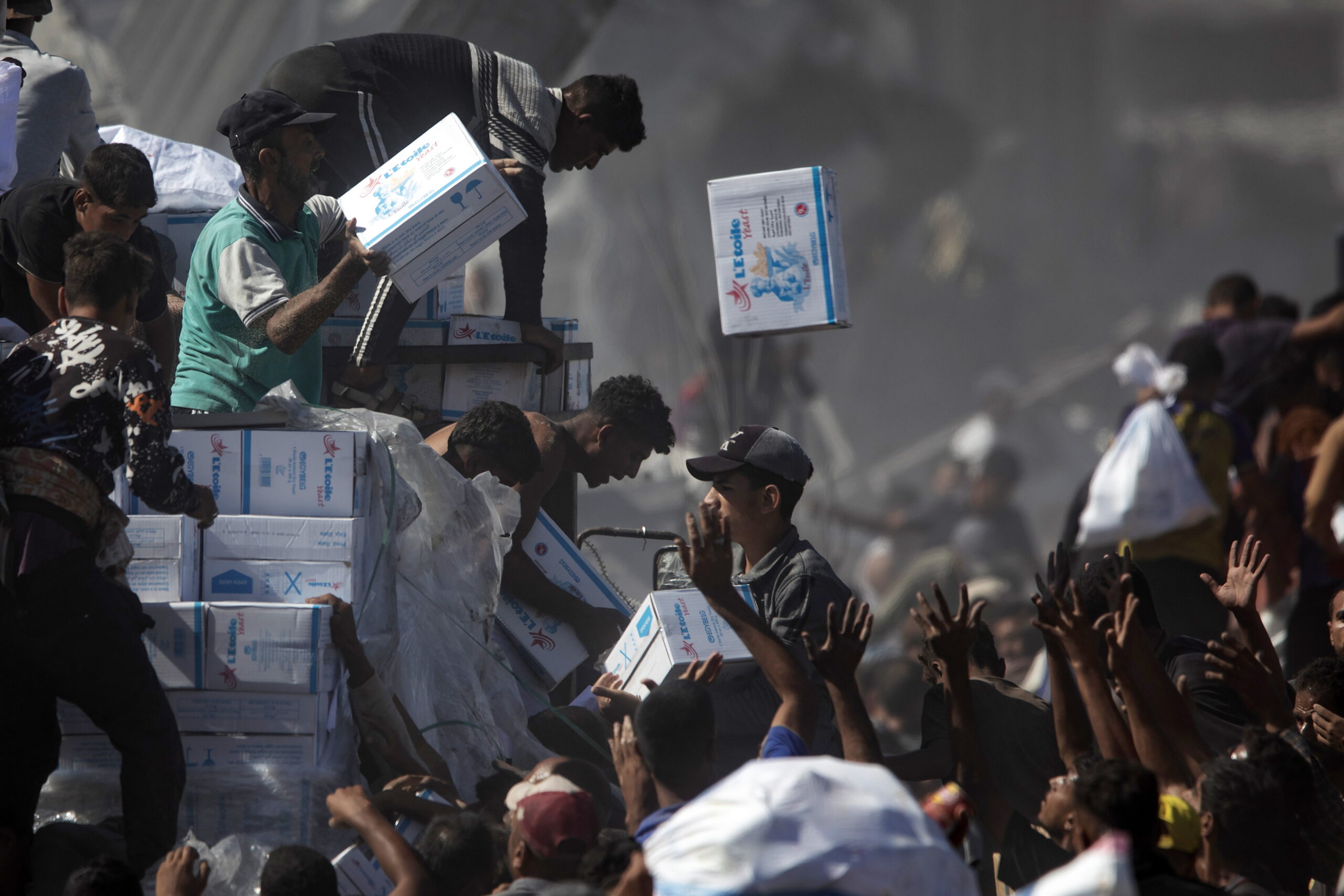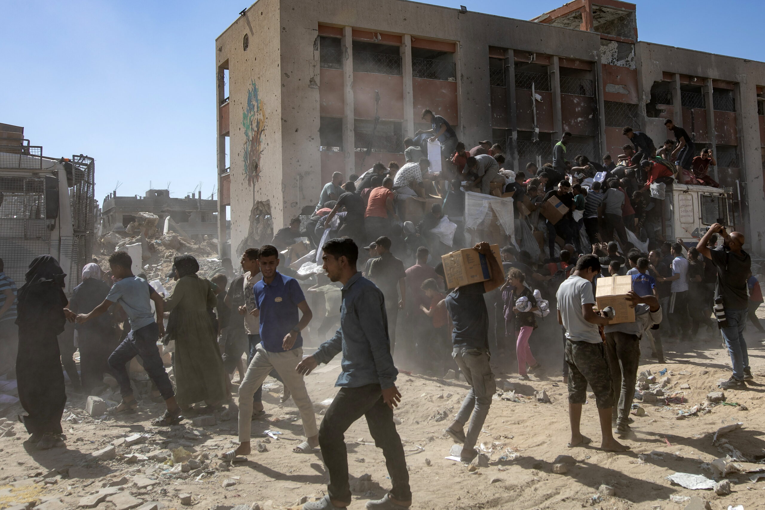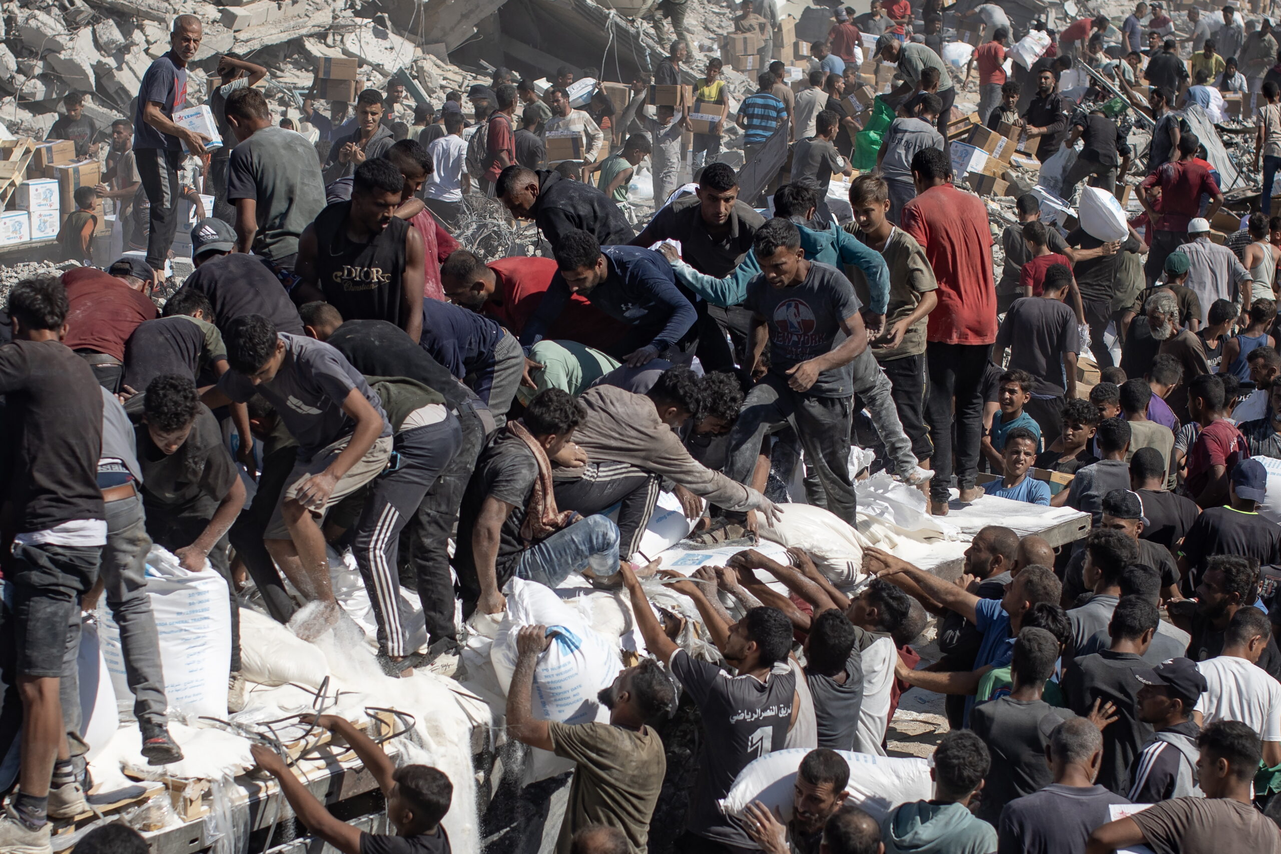 Οι φωτογραφίες είναι από τη Γάζα. Τραβήχτηκαν στις 11 και 12 Οκτωβρίου 2025 όταν ξεκίνησαν οι εκτοπισμένοι να επιστρέφουν στον τόπο τους – ή τουλάχιστο σε ό,τι απέμεινε απ’ αυτόν –  μετά και την επικύρωση της συμφωνίας για τερματισμό ενός πολέμου που κράτησε δύο χρόνια. Ανάμεσα στα χαλάσματα εκατοντάδες φορτηγά άρχισαν να καταφθάνουν την Κυριακή φορτωμένα ανθρωπιστική βοήθεια και από κάτω χιλιάδες «μη πεινασμένοι» με απλωμένα τα χέρια ελπίζουν πλέον… σε κάτι. (Πηγή φωτογραφιών: European Pressphoto Agency, EPA)