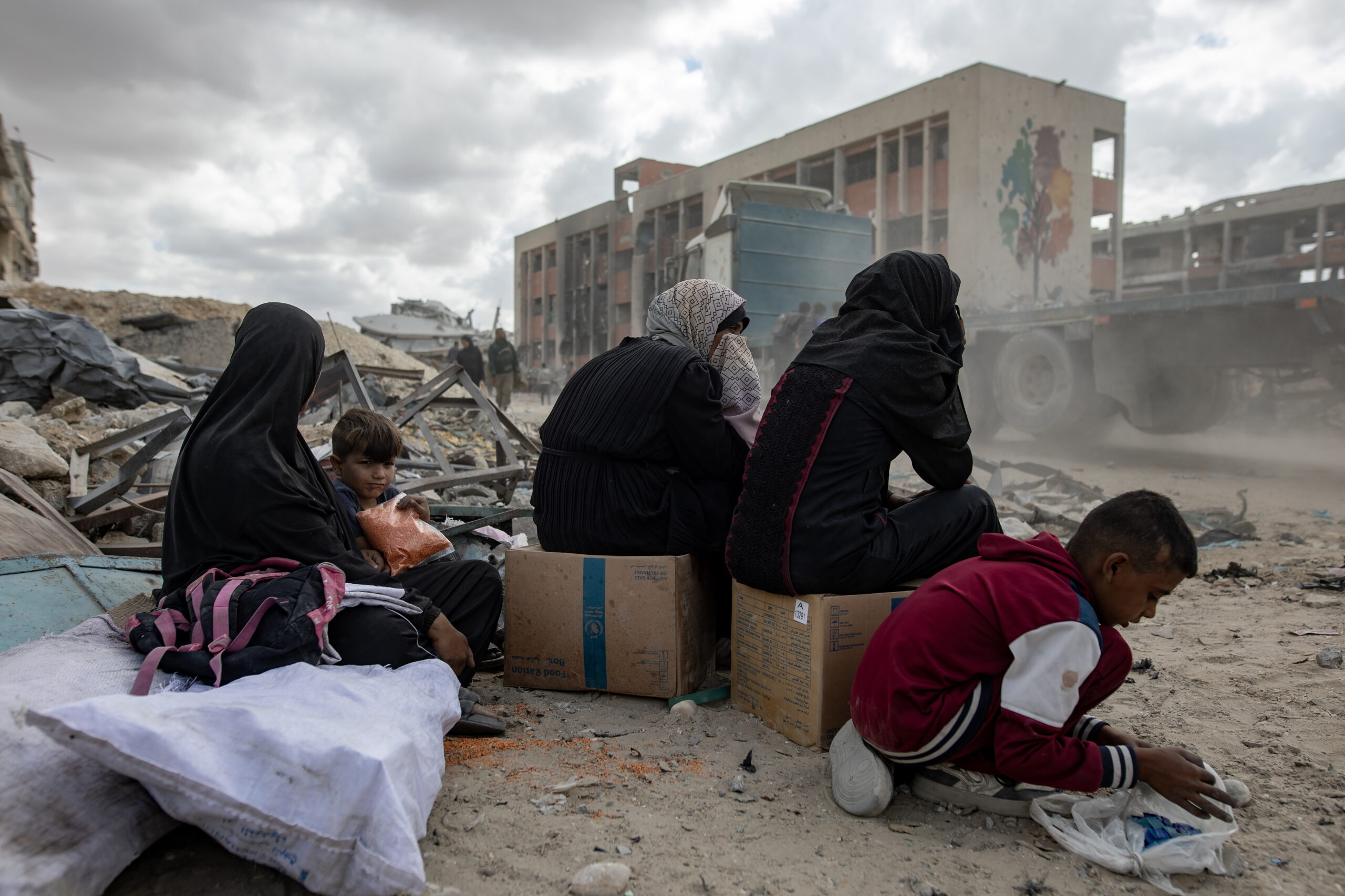Οι φωτογραφίες είναι από τη Γάζα. Τραβήχτηκαν στις 11 και 12 Οκτωβρίου 2025 όταν ξεκίνησαν οι εκτοπισμένοι να επιστρέφουν στον τόπο τους – ή τουλάχιστο σε ό,τι απέμεινε απ’ αυτόν – μετά και την επικύρωση της συμφωνίας για τερματισμό ενός πολέμου που κράτησε δύο χρόνια. Ανάμεσα στα χαλάσματα εκατοντάδες φορτηγά άρχισαν να καταφθάνουν την Κυριακή φορτωμένα ανθρωπιστική βοήθεια και από κάτω χιλιάδες «μη πεινασμένοι» με απλωμένα τα χέρια ελπίζουν πλέον… σε κάτι. (Πηγή φωτογραφιών: European Pressphoto Agency, EPA)