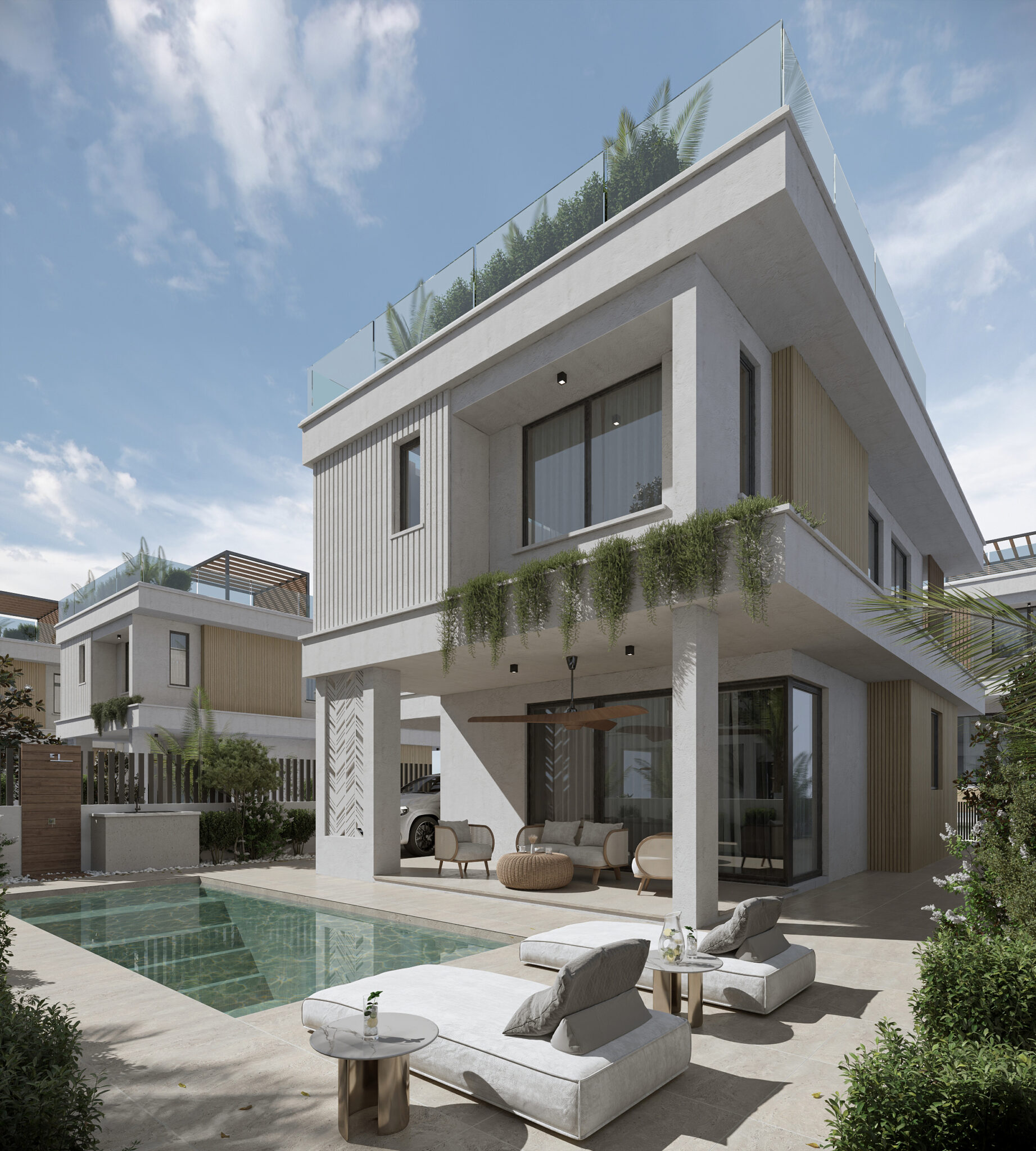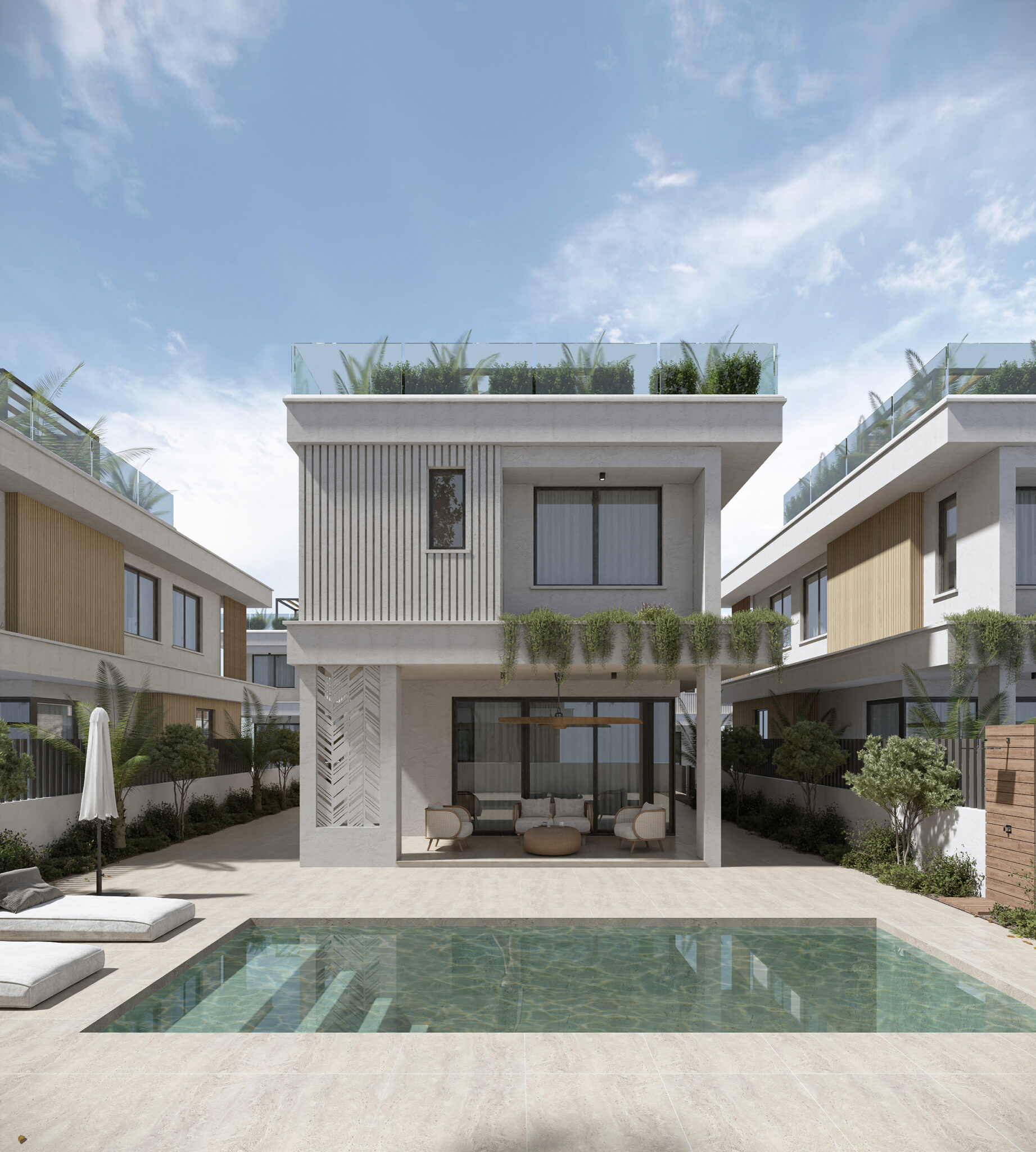 Το έργο περιλαμβάνει δεκαεννέα πολυτελείς κατοικίες των τριών υπνοδωματίων, όλες με ιδιωτική πισίνα, roof garden και κήπο δημιουργώντας ένα σκηνικό χαλάρωσης που μπορείτε να απολαμβάνετε όλες τις ώρες της ημέρας.