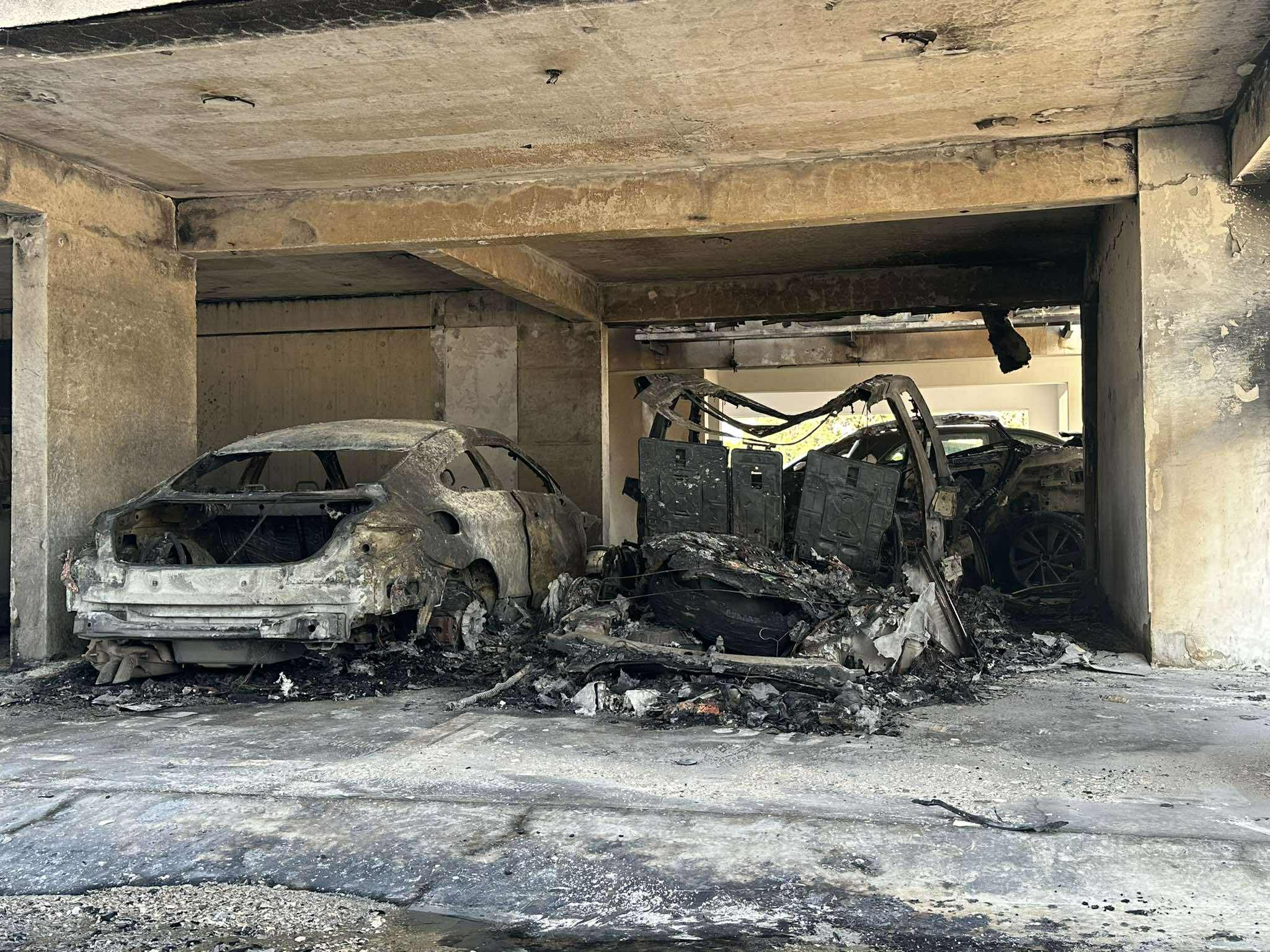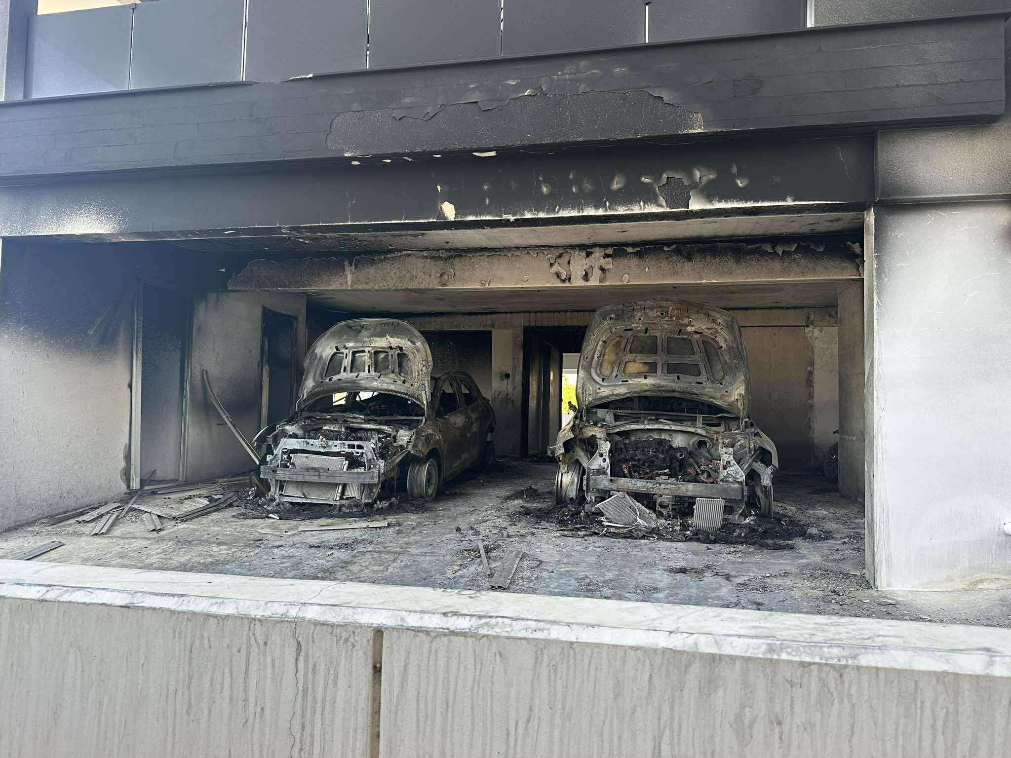Η εικόνα που αντίκρισαν ένοικοι, πυροσβέστες και αστυνομικοί, μετά την κατάσβεση, ήταν στάχτες και αποκαΐδια, αφού πέντε συνολικά οχήματα που ήταν σταθμευμένα στο ισόγειο καταστράφηκαν ολοσχερώς, ενώ άλλα δύο υπέστησαν εκτεταμένες ζημιές.