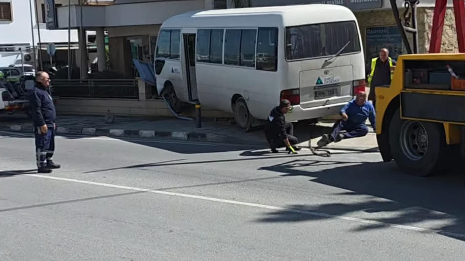 Προσωπικό του Δήμου Στροβόλου παρενέβη για ρυμούλκηση και απομάκρυνση του μικρού λεωφορείου από το σημείο, ώστε να αποκατασταθεί άμεσα η διακίνηση οχημάτων στον κεντρικό δρόμο.