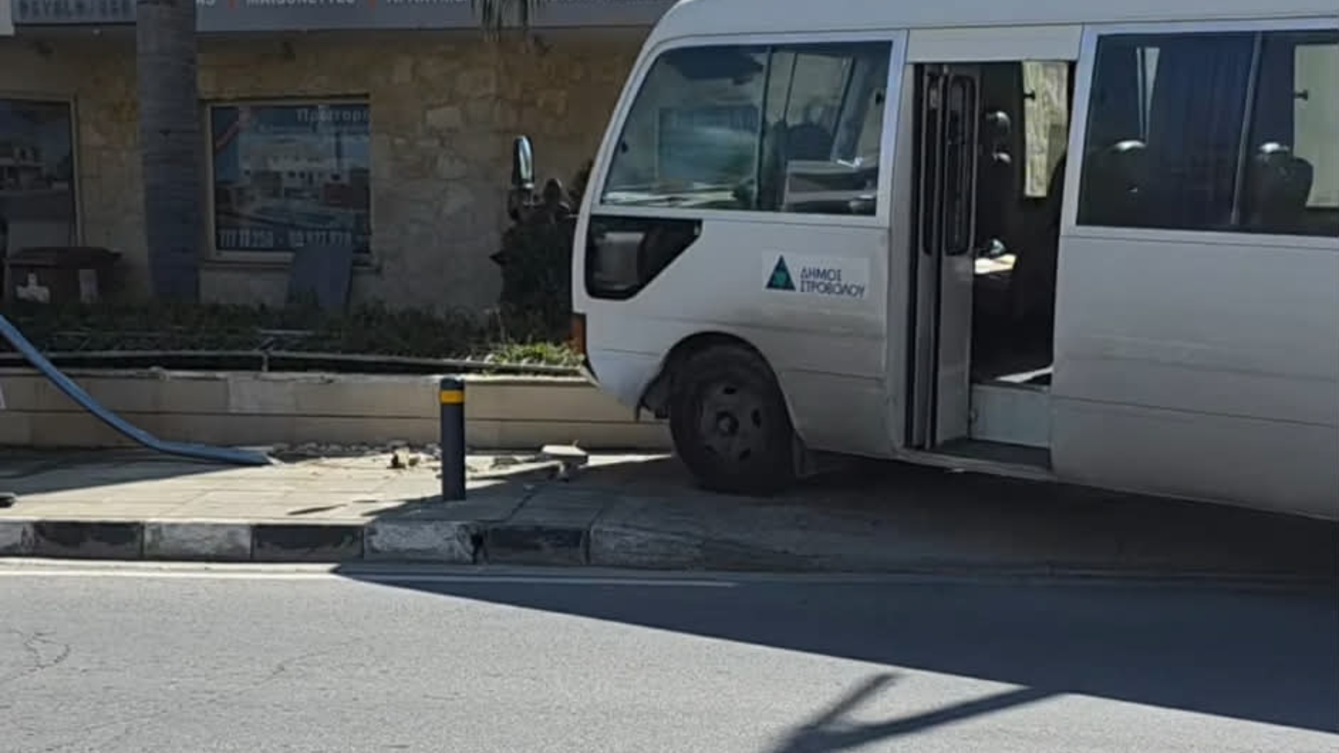 Αναστάτωση προκλήθηκε γύρω στη μια το μεσημέρι όταν ο οδηγός μικρού λεωφορείου του Δήμου Στροβόλου που κινούνταν στην οδό Περικλέους, έχασε τον έλεγχο του οχήματος και προσέκρουσε σε περιτοίχισμα πολυκατοικίας.