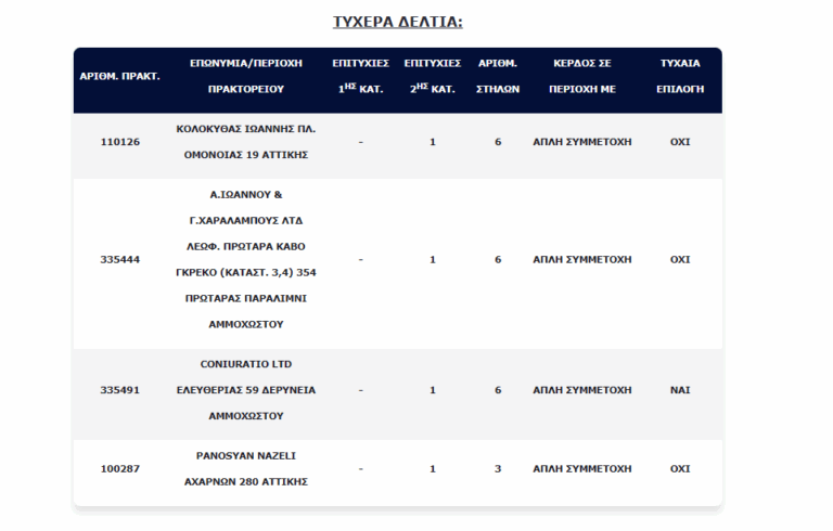 Στην χθεσινή κλήρωση βρέθηκαν τέσσερις τυχεροί στην δεύτερη κατηγορία, που κερδίζουν 100.000 ευρώ.