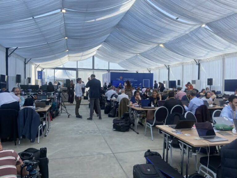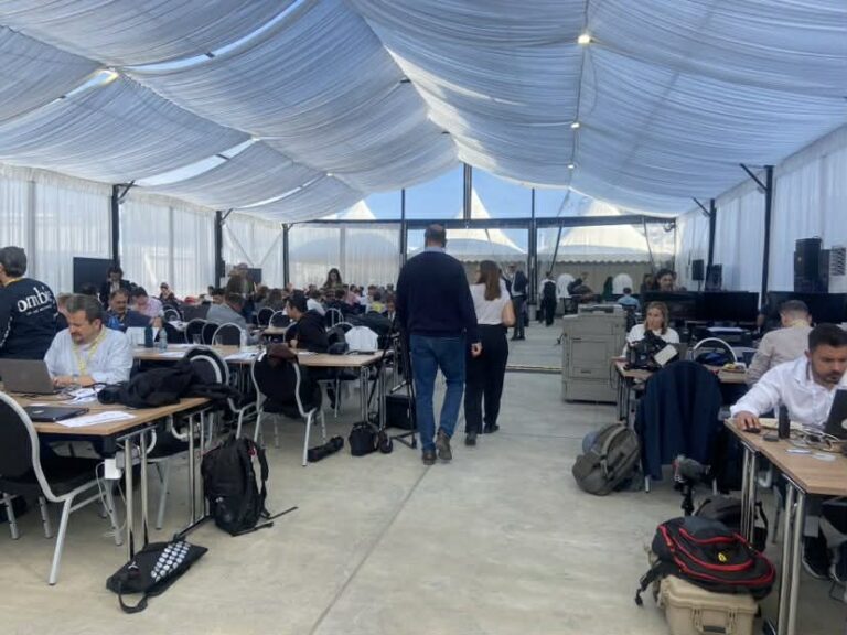 Στην Μαρίνα Αγίας Νάπας όπου θα παρατεθεί απόψε το Άτυπο Δείπνο έχει στηθεί Κέντρο Τύπου στα πρότυπα των Συνόδων του Ευρωπαϊκού Συμβουλίου στις Βρυξέλλες, με τελευταίας τεχνολογίας εξοπλισμό για τη διευκόλυνση όλων των αναγκών των λειτουργών του Τύπου.