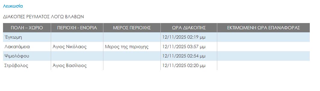 Επι ποδός βρίσκονται και συνεργεία της ΑΗΚ για αποκατάσταση των βλαβών που έχουν καταγραφεί. Λόγω υπερφόρτωσης του Κέντρου Τηλεξυπηρέτησης της ΑΗΚ από εισερχόμενες κλήσεις μάλιστα, υπάρχει σοβαρή καθυστέρηση στην εξυπηρέτηση.