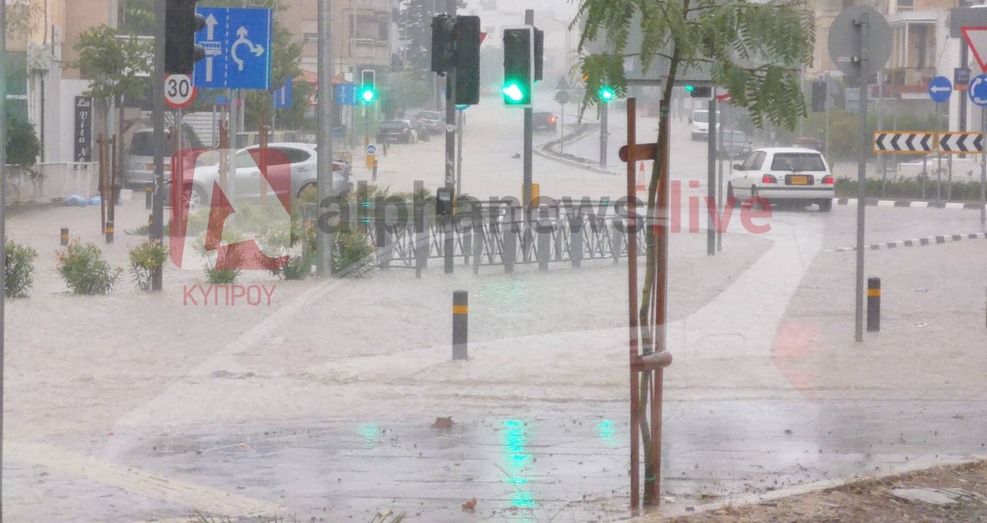 Σε "ποτάμι" μετατράπηκε μέσα σε λίγα λεπτά η λεωφόρος Λάρνακος στην Αγλαντζιά