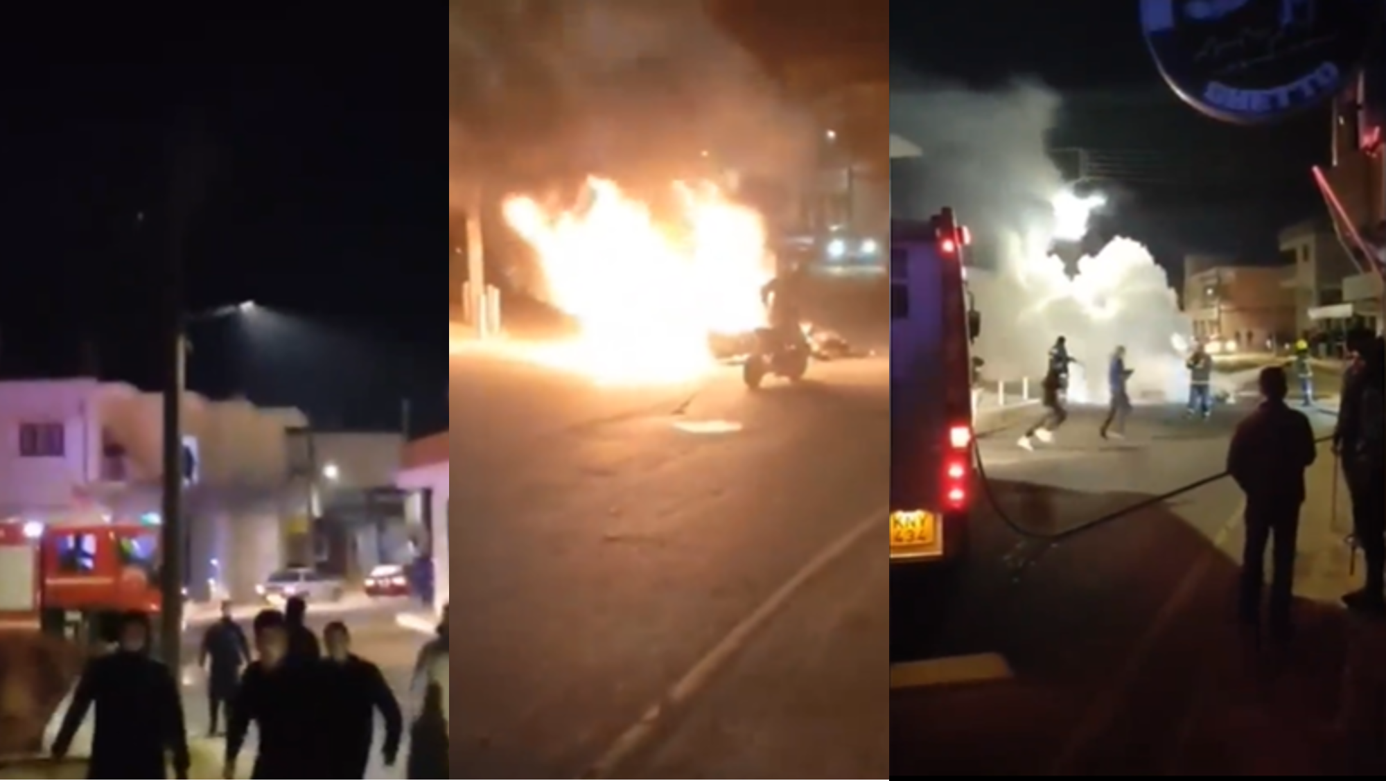 Στο σημείο έσπευσαν μέλη της Αστυνομίας και της Πυροσβεστικής Υπηρεσίας και ενώ προσπαθούσαν να κατασβήσουν την πυρκαγιά, κάποια από τα πρόσωπα που είχαν συγκεντρωθεί στο σημείο, άρχισαν να βρίζουν και να ρίχνουν πέτρες προς τους αστυνομικούς και τους πυροσβέστες.