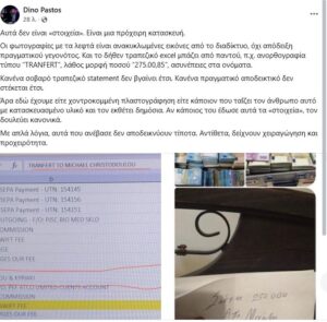 Όπως αναφέρει, δεν πρόκειται για «στοιχεία», αλλά για πρόχειρη κατασκευή, καθώς «οι φωτογραφίες με τα λεφτά είναι ανακυκλωμένες εικόνες από το διαδίκτυο, όχι απόδειξη πραγματικού γεγονότος.»