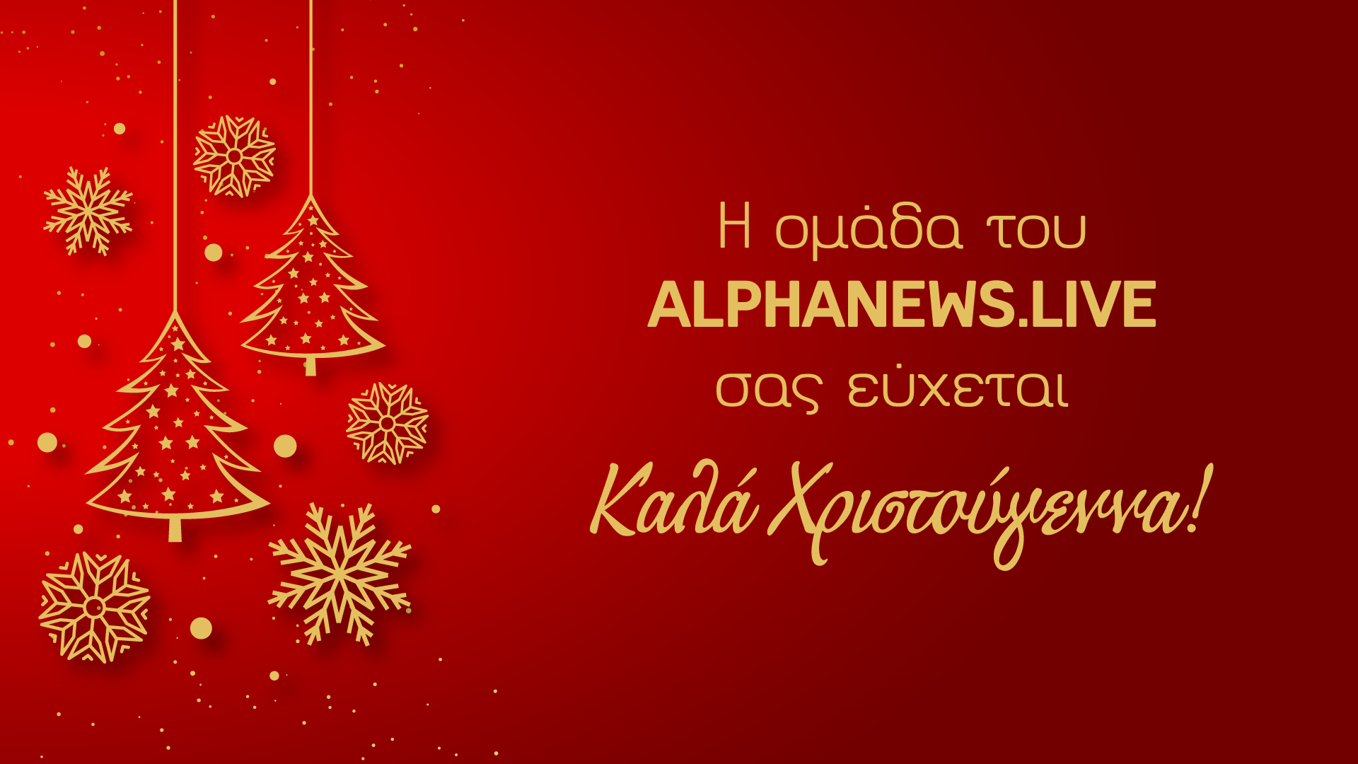 H Διεύθυνση και η συντακτική ομάδα του AlphaNews.Live σας εύχονται Καλά Χριστούγεννα, με Υγεία και Χαρά.