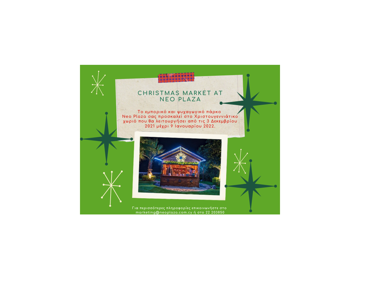 Και αυτό γιατί το Neo Plaza, το νέο Εμπορικό και Ψυχαγωγικό πάρκο της Κύπρου, που ήρθε για να ταράξει τα νερά και να αναδειχθεί στο νέο meeting point του νησιού, είναι ένα μοναδικό κέντρο πολύπλευρης αναψυχής αλλά και εμπορικού ενδιαφέροντος, που ενώ εξυπηρετεί τη φιλοσοφία του smart shopping για όλους και για όλο το χρόνο, αυτές τις γιορτές μεταμορφώνεται στον ιδανικό προορισμό για Fun, Food, Christmas Celebration & Shopping!