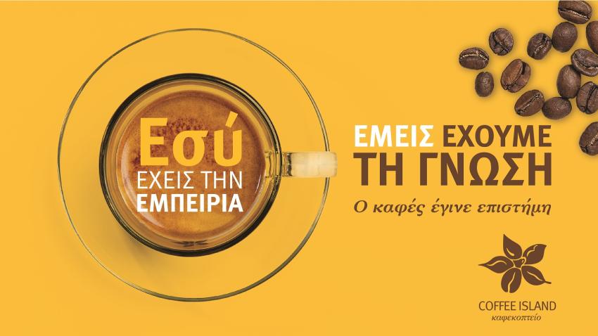 Τι κρύβεται πίσω από ένα καφέ Coffee Island; Για σένα αμέτρητες στιγμές απόλαυσης. Για μας μια ολόκληρη επιστήμη. Μέσα από αυτό το σκεπτικό, η νέα εκστρατεία επικοινωνίας της γνωστής αλυσίδας καφεκοπτείων, ήρθε να μας γεμίσει όμορφες εμπειρίες, αρώματα, γεύσεις, να μας ταξιδέψει σε μέρη εξωτικά, να μας δροσίσει, να μας κάνει home baristas και να μας μάθει τα πάντα για τον μοναδικό καφέ Coffee Island.