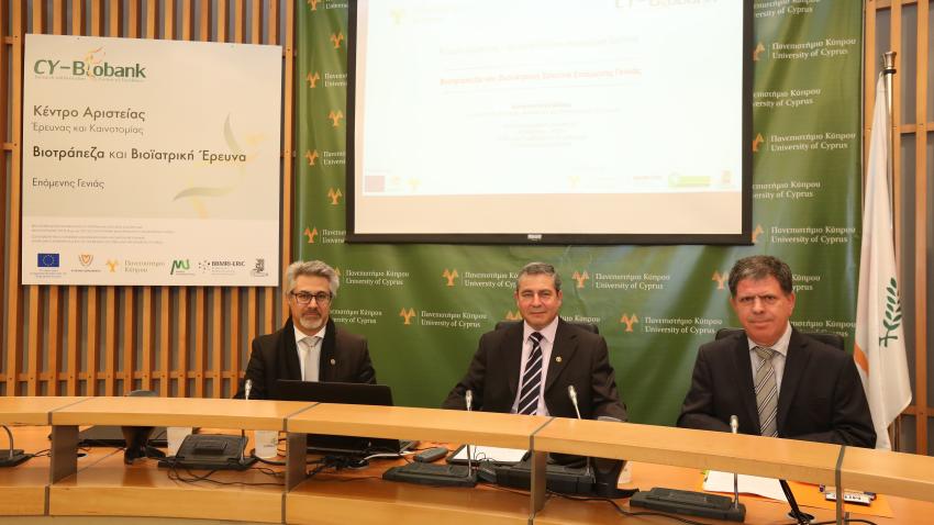 Όπως υπογράμμισε ο Καθηγητής Κωνσταντίνος Δέλτας, Διευθυντής του Κέντρου Αριστείας του Πανεπιστημίου, το έργο CY–Biobank αφορά στον Κυπριακό πληθυσμό στο σύνολό του, αλλά και στον κάθε Κύπριο ξεχωριστά. Πρόκειται για μια μοναδική ερευνητική υποδομή, η οποία μέσα από την αρχειοθέτηση βιολογικού υλικού και του ατομικού ιατρικού φακέλου, δημιουργεί καινοτόμες προοπτικές για έρευνα, με σκοπό τη βελτίωση της υγείας και της ποιότητας της ζωής μας. Αυτό επιτυγχάνεται με την αναβάθμιση των διαδικασιών διάγνωσης, την πρόγνωση και πρόληψη των διαφόρων ασθενειών, την προώθηση ερευνών, αλλά και την ανακάλυψη νέων φαρμάκων. Είναι ένα έργο μεγάλης επιστημονικής αξίας, με ανθρωποκεντρικό χαρακτήρα, που χρειάζεται να αγκαλιαστεί τόσο από το κοινό όσο και από όλους τους φορείς του εθνικού συστήματος υγείας.
