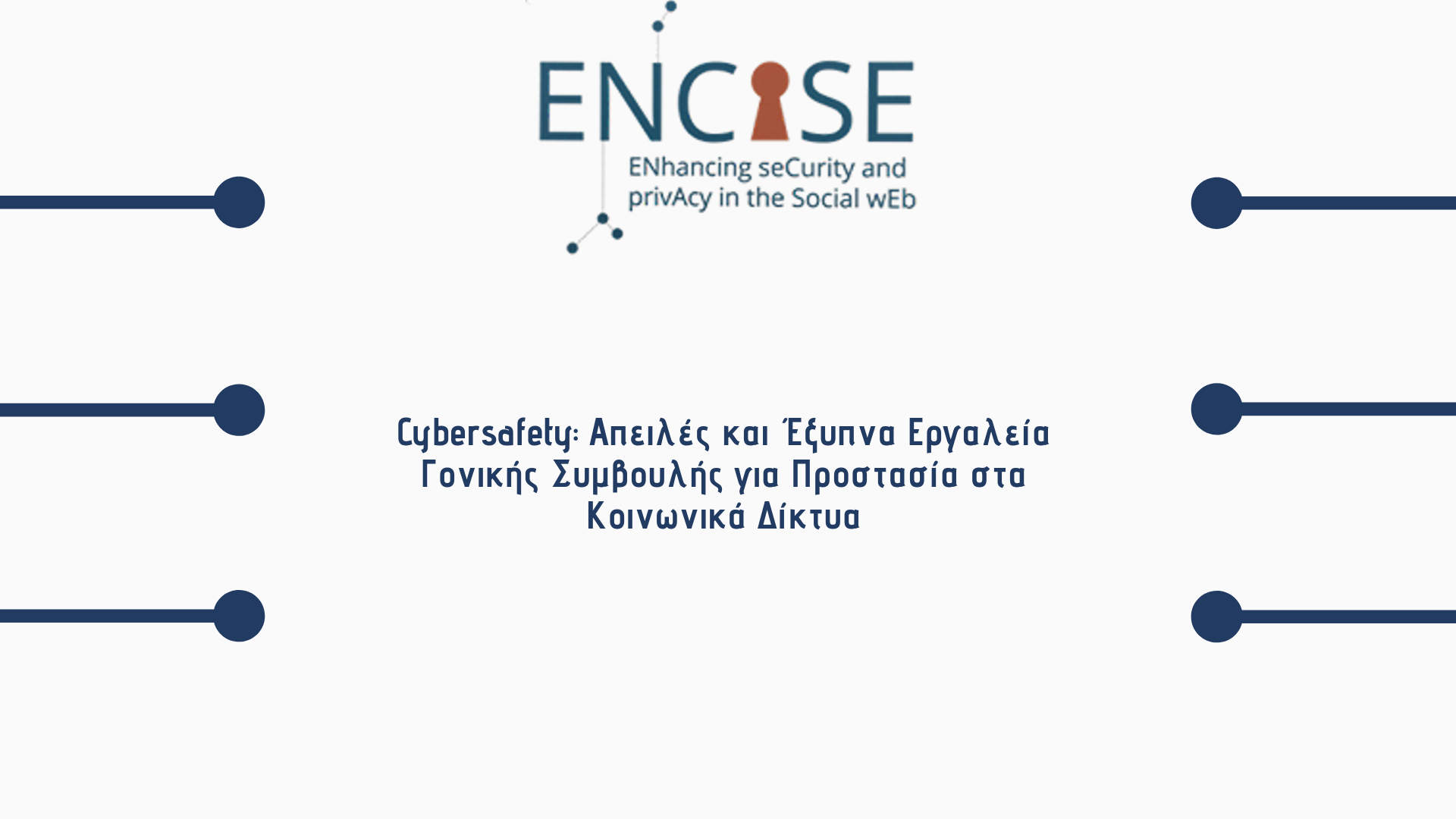 Το Ερευνητικό Κέντρο Κοινωνικής Πληροφορικής (http://socialcomputing.eu) του Τεχνολογικού Πανεπιστημίου Κύπρου διοργανώνει εκδήλωση στα πλαίσια του ερευνητικού έργου “ENCASE: Βελτίωση της Ασφάλειας και της Ιδιωτικότητας στα Κοινωνικά Δίκτυα: Προσέγγιση με Γνώμονα τον Χρήστη για την Προστασία των Ανηλίκων” (http://encase.socialcomputing.eu).