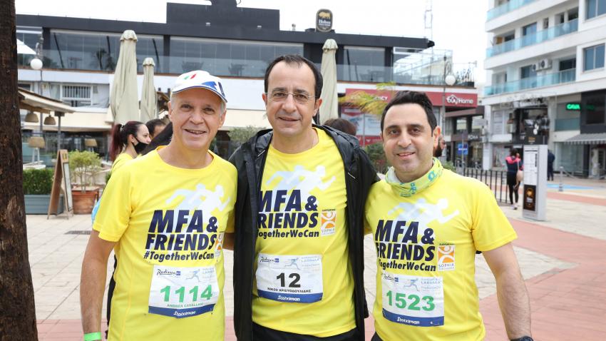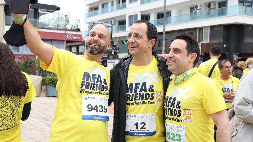 Σε δηλώσεις του ο κ. Χριστοδουλίδης είπε πως «επιλέξαμε στον Μαραθώνιο να τρέξουμε για να βοηθήσουμε το ‘Ίδρυμα Σοφία για τα Παιδιά’ που είναι ένα ίδρυμα που κάνει εξαιρετική δουλειά στις χώρες της Αφρικής, προβάλλοντας μέσα από τη δράση του και το όνομα της χώρας μας. Γι’ αυτό είμαστε εδώ για να στηρίξουμε αυτή τη πολύ σημαντική προσπάθεια με τον Μαραθώνιο στη Λάρνακα, που έχει προσελκύσει πάρα πολύ κόσμο και από άλλες χώρες».